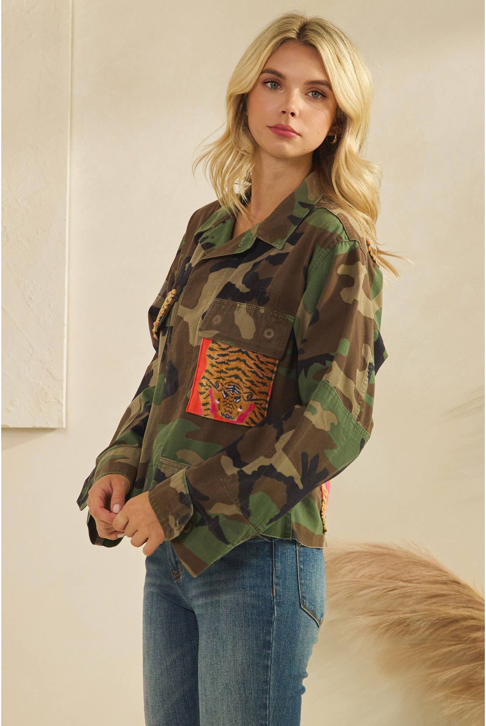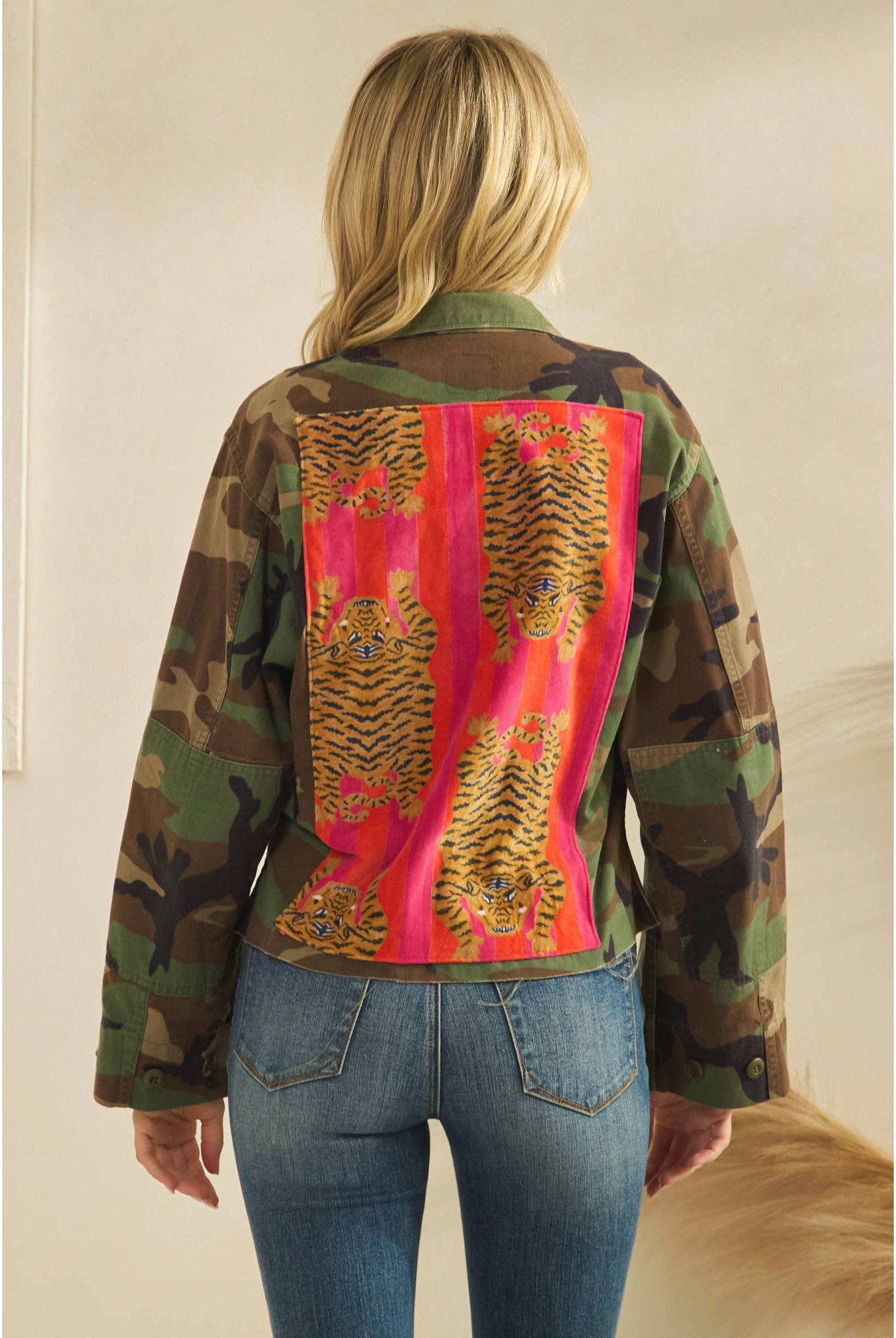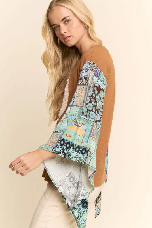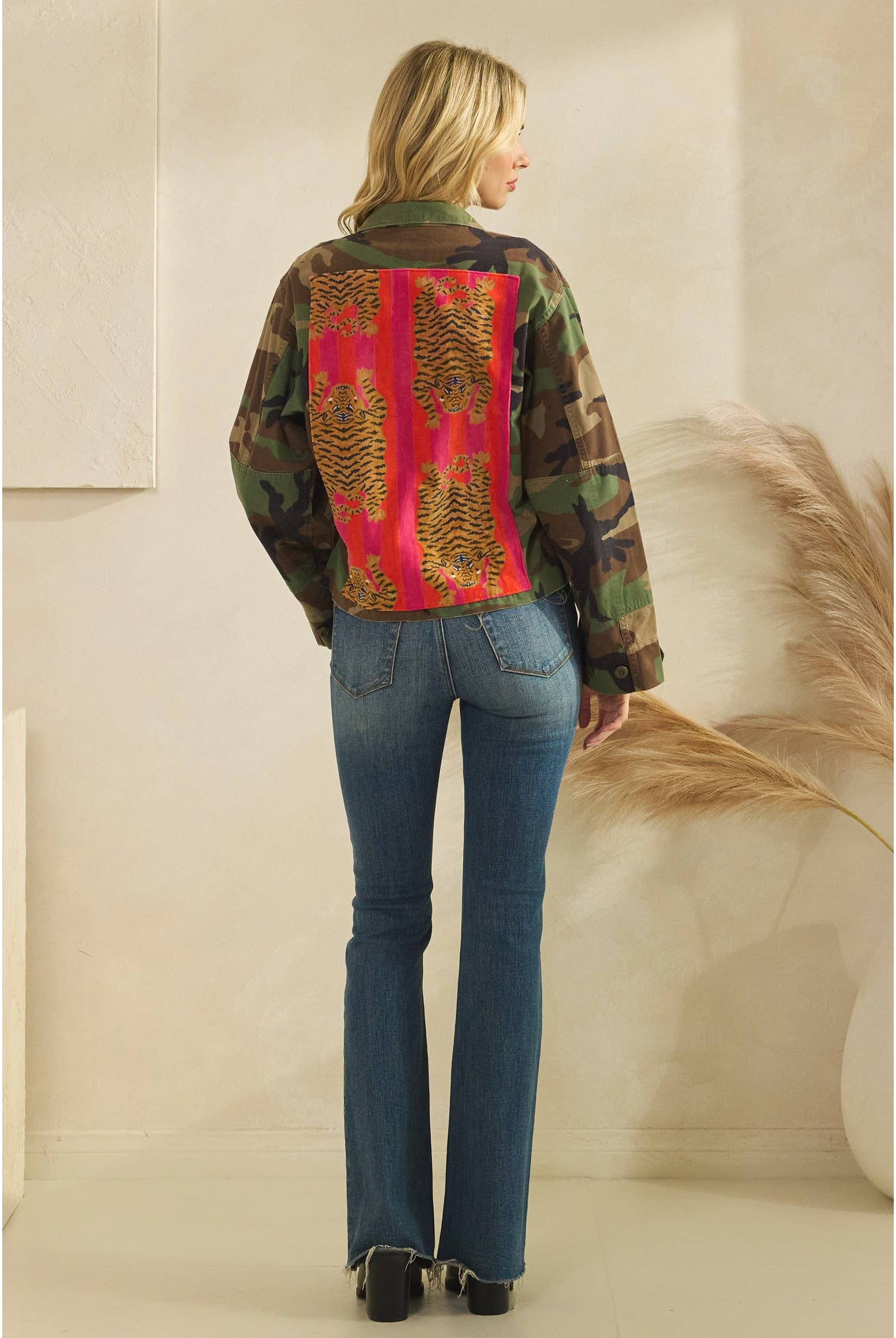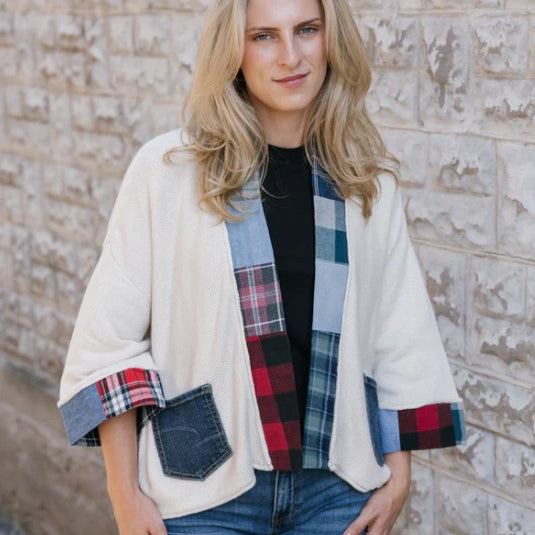 Make a statement with our Karol Cardigan. With the elegant prints made with care by our woman’s co-op in Thailand and our deconstructed vintage upcycled denim, you’ll have all eyes on you.