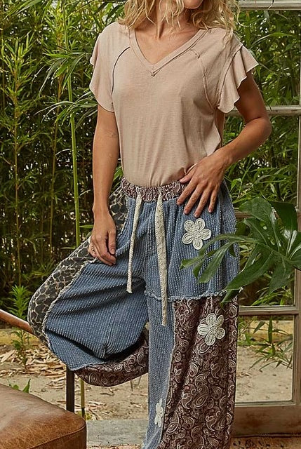 Our small group of prints are made with care by our Women’s Co-Op in Thailand. The prints are limited runs to be mindful of limiting our fabric waste. We have combined deconstructed vintage denim and upcycled them into many of the designs, this diverts it from the landfills and gives it new life. One Size