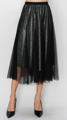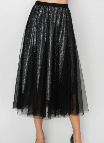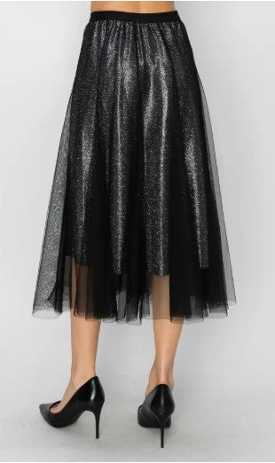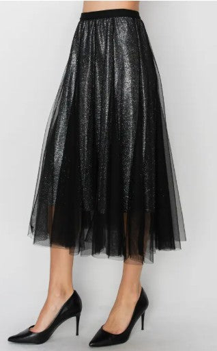 The Flowy Mesh Skirt with Sparkly Lining, is an exquisite addition to your wardrobe. Drawing from our inspiration of lace and crochet, we've designed this skirt to offer a unique blend of elegance and contemporary style. It features a sparkly underlining that subtly shines through its mesh layer, creating an enchanting effect. This skirt is a perfect choice for adding a touch of glamour to your look.