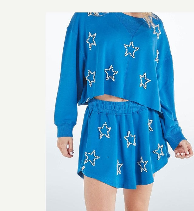 inject some fun into your look with this playful skort. It features faux pearl outlined star designs, interior short, elastic waistband with draw cord, and Simply Southern logo label at hem. Made of 48% modal 48% polyester 4% spandex.