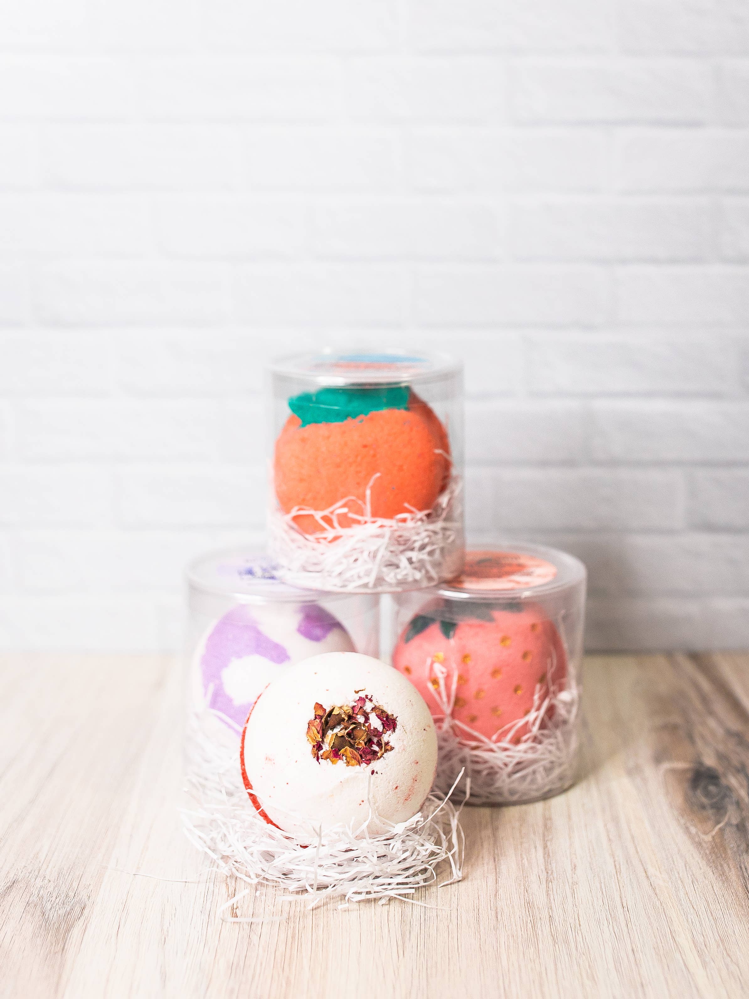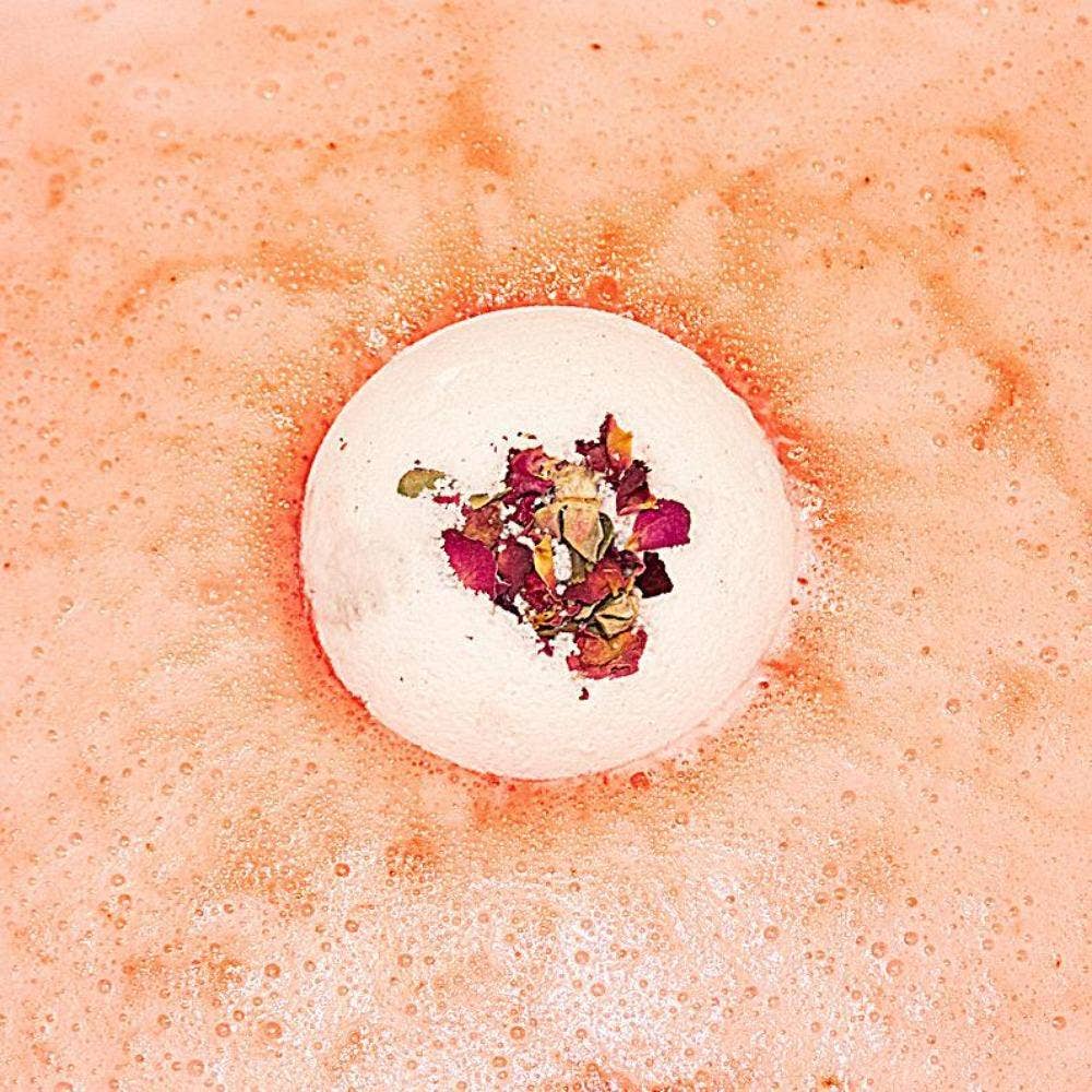 Turn your bath into the ultimate spa experience. Handmade with real Moroccan Rose petals, each Enchanted Rose Bath Bomb will fizz and bubble, releasing the sweet smell of freshly picked roses. Containing natural antioxidants and oils, the rose petals will help lock in moisture, keeping your skin feeling smooth. Ingredients: Sodium Bicarbonate, Citric Acid, Corn Starch, Sunflower Seed Oil, Epsom Salt, Water, Sodium Lauryl Sulfoacetate ( derived from palm and coconut oils), Polysorbate 80, Essential oils / Fragrance, Mica, Lake Color.