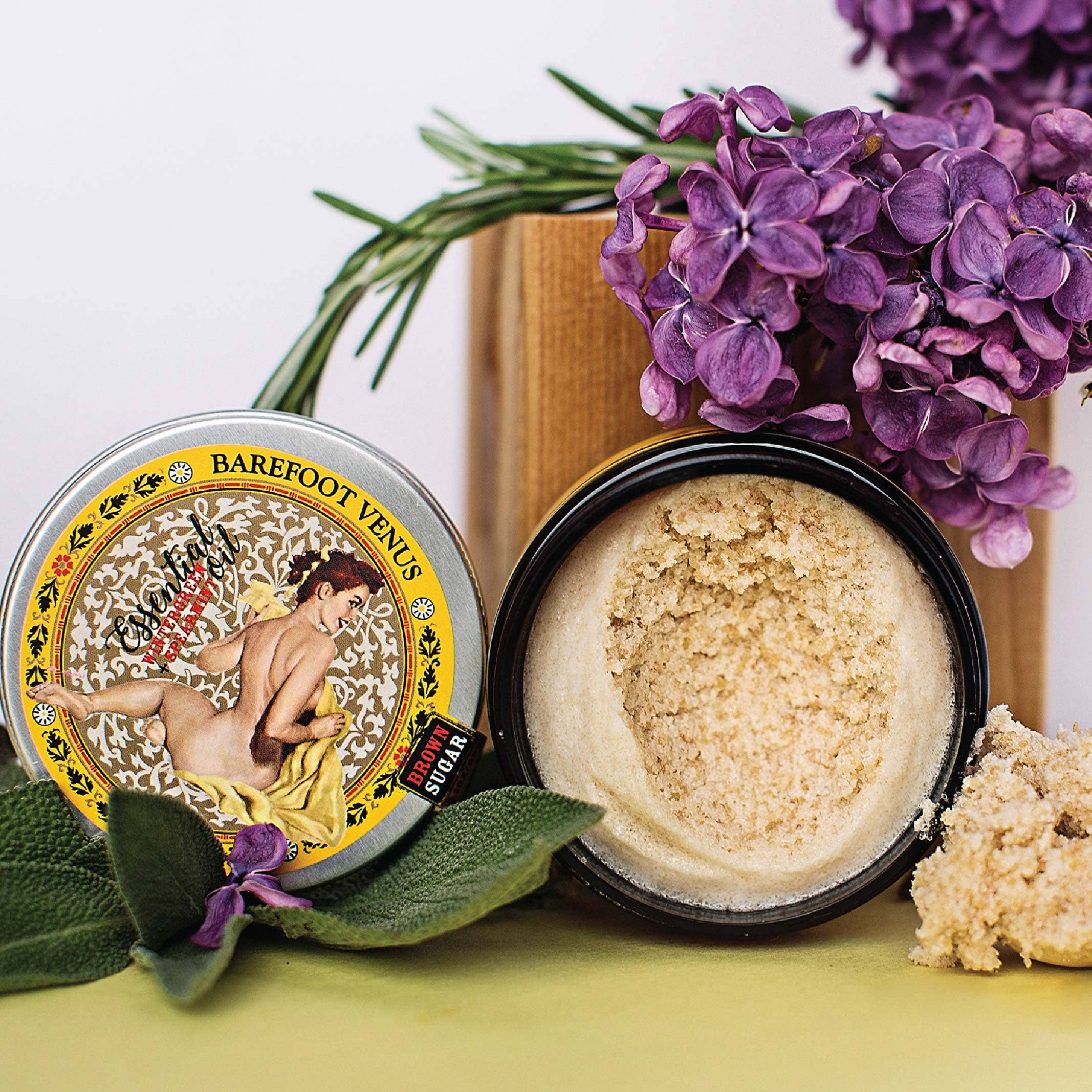PURE PLANT ENERGY OF WINTERGREEN, SPEARMINT & SWEET ORANGE Scoop a handful of Sugar Scrub and buff to a glamorous glow from your shoulders to your toes. Loaded with Sugar Granules to help lift dead skin cells from the skin’s surface, leaving your skin feeling smooth and irresistible to your touch.  "I really enjoy the feeling of my skin after I use this scrub, it's softer and smoother. My skin feels more hydrated when I use it. The scent is very relaxing as an added bonus" Cathy. L ★★★★★ 4oz ❤︎ HAND MADE | CRUELTY FREE | PLANT-MAGIC | PEOPLE + PLANET Created WITH: Coconut Oil, Brown Sugar, Shea Butter, Avocado Oil Paraben-free, Sulfate-free, Cruelty-free Full Ingredients at BarefootVenus.com