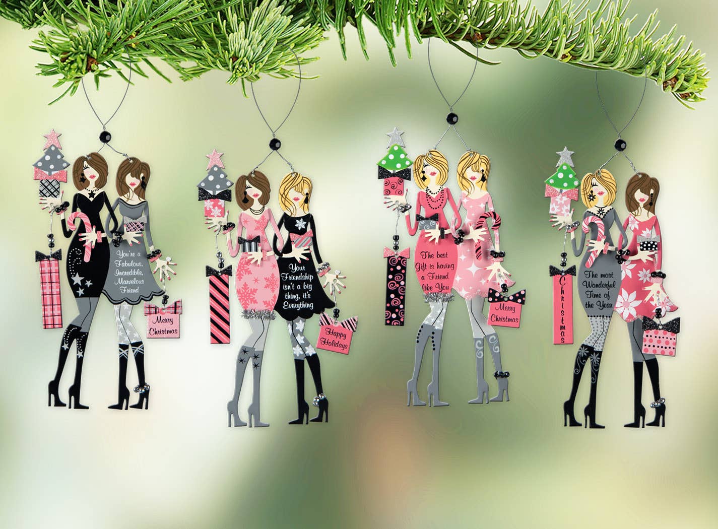 Introducing the Fabulous Friends Ornament Set by Sunset Vista Designs. This assortment of four captivating ornaments measures approximately 3" x 1" x 9.75". Ideal for adorning your home and creating a warm, inviting atmosphere. Each piece reflects the brand's commitment to innovative design and high-quality craftsmanship. These ornaments not only serve as charming decorative objects but also offer a unique way to express your personal style. Enjoy the blend of functionality and artistry with this exquisite set. Perfect for gifting or enhancing your own home décor collection.