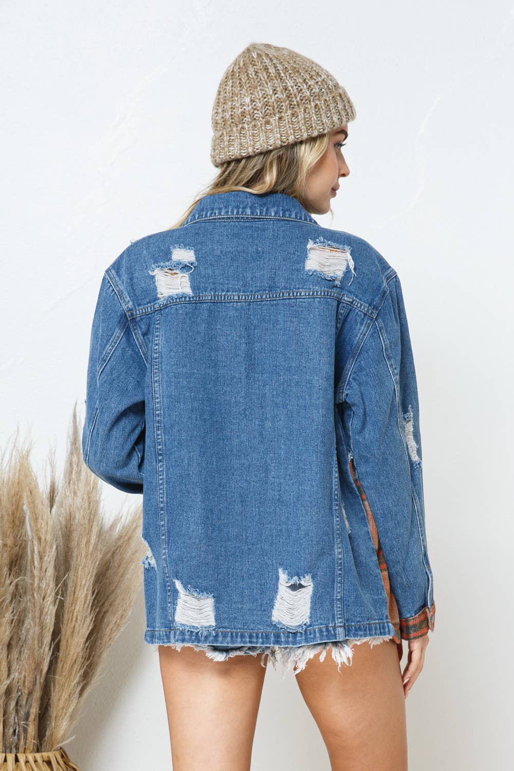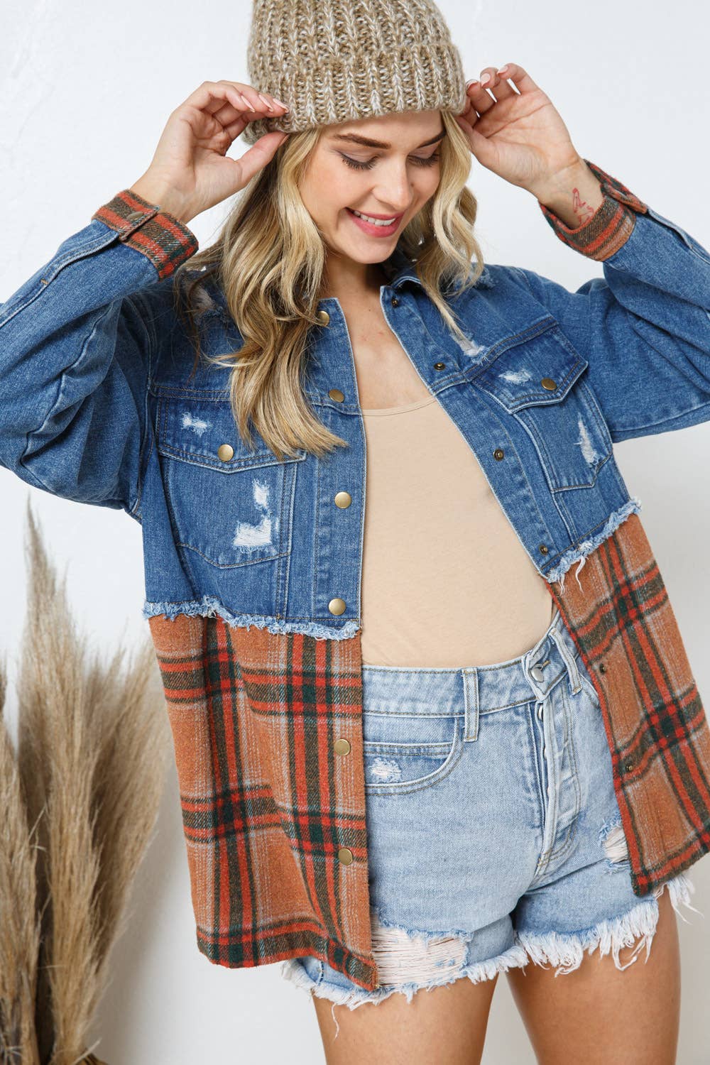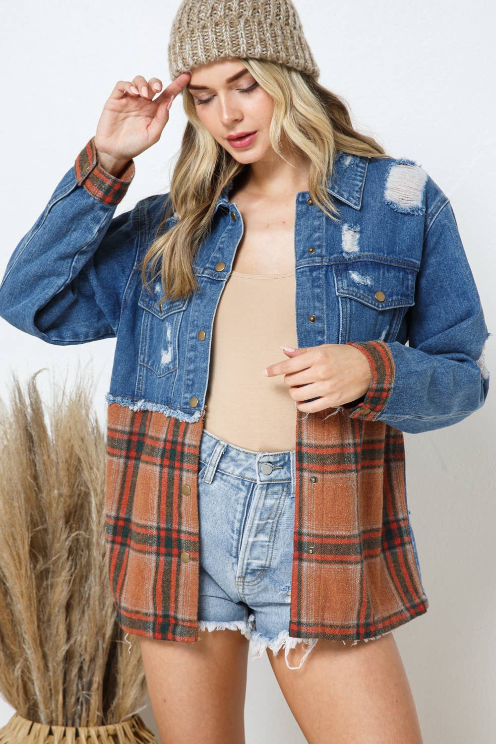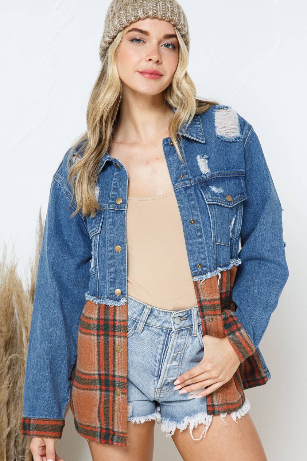 This denim jacket with plaid flannel is super adorable for winter. It can go with just about any bottom.