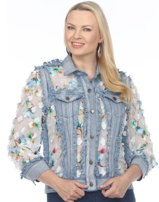 This AZI jacket is one of our favorites, that's why we restocked it. It goes with every color in you wardrobe. It is beautiful and sheer. The sleeves go to your wrists.