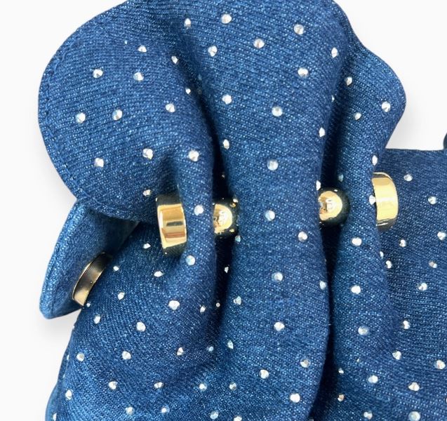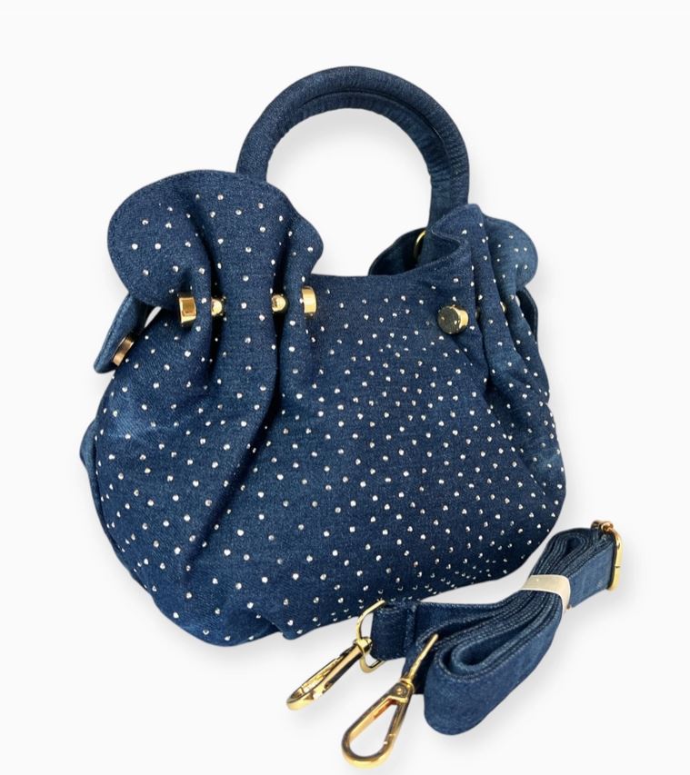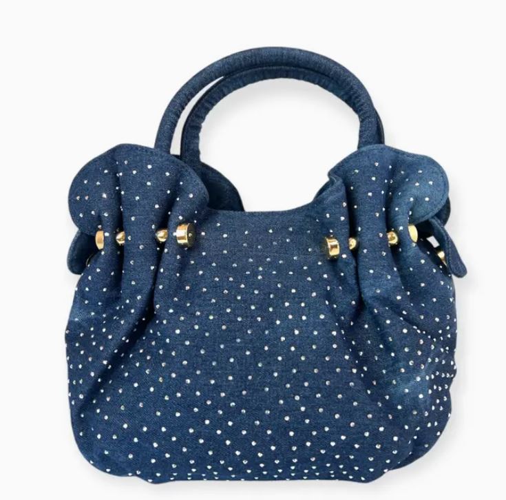 Denim Rhinestone Handbag featuring a sparkling design with rhinestone accents ,combining casual denim with a touch of glamour.