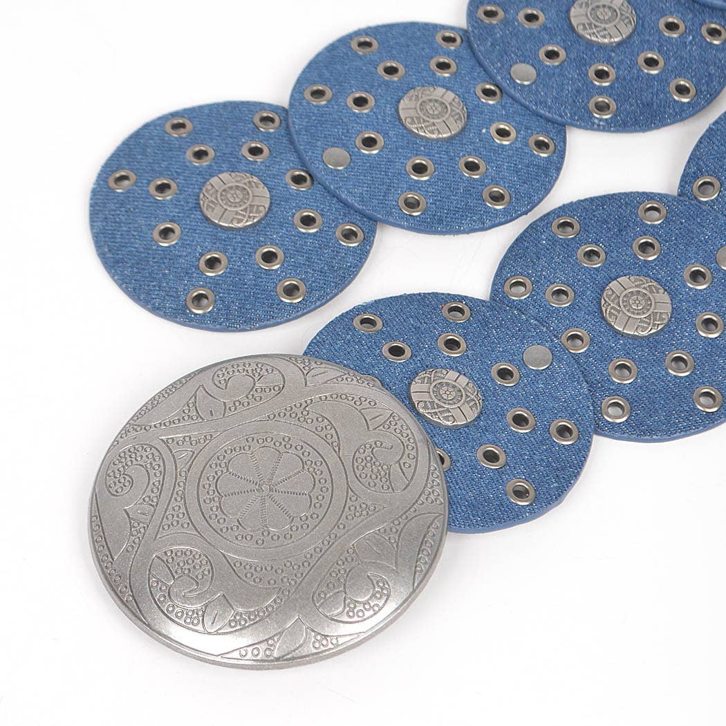 - Denim Multi Eyelet Rounds Western Belt * POLYURETHANE/ IRON. * APPROX. WIDTH:3".LENGTH:40.5"