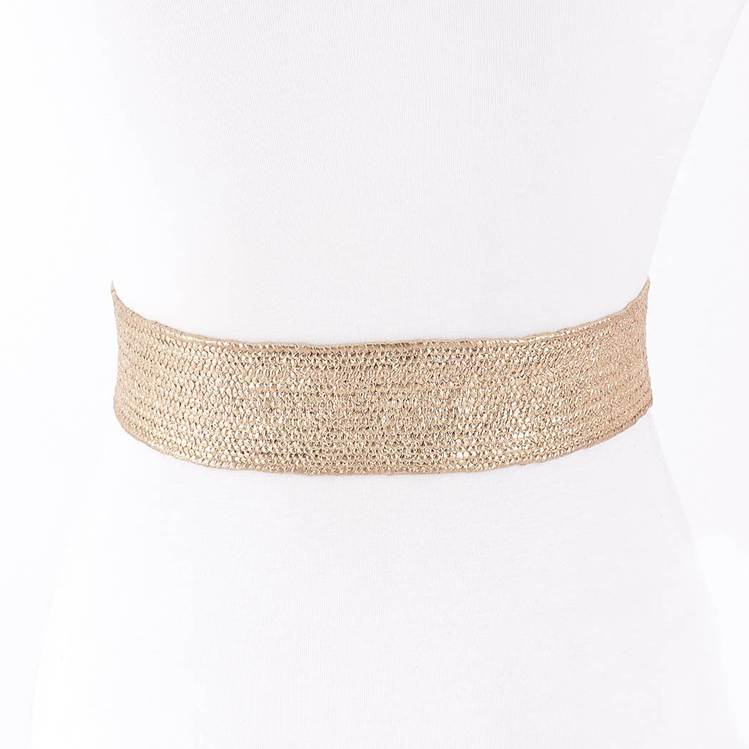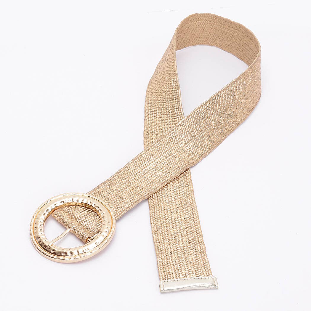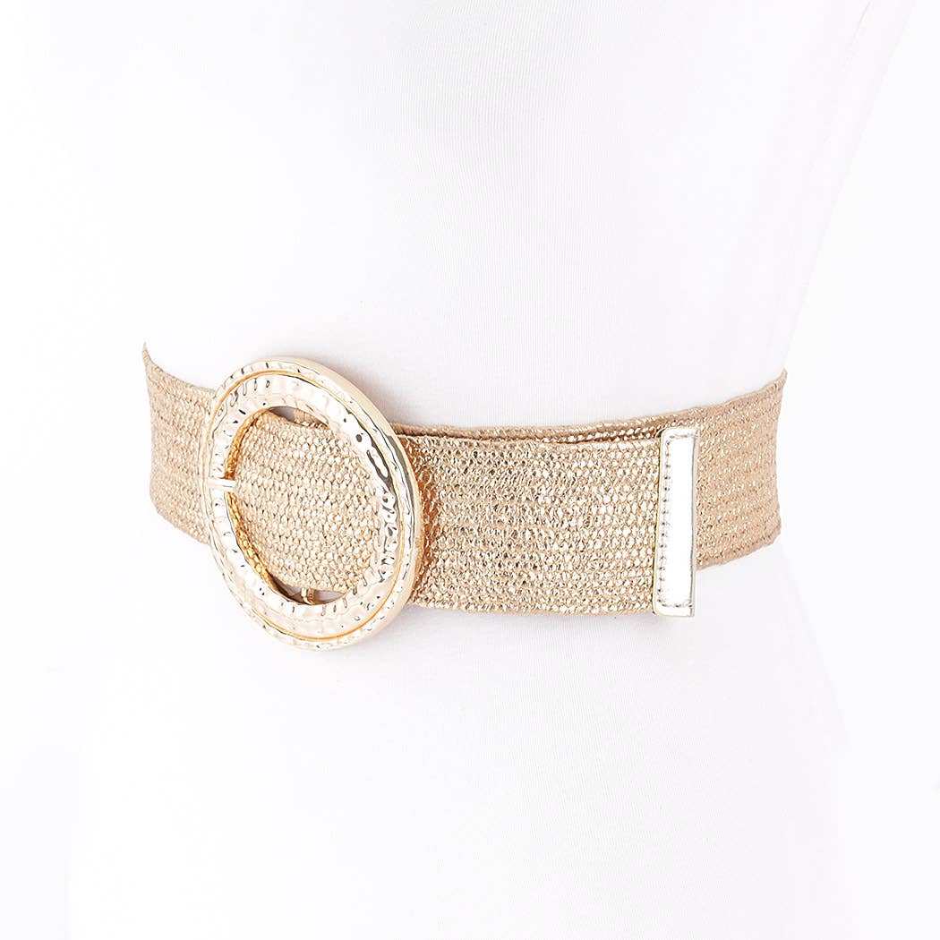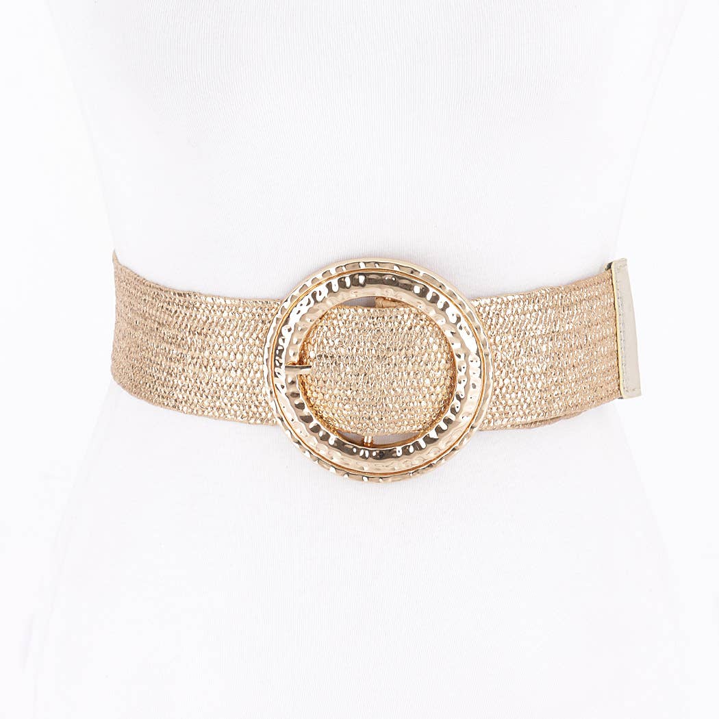 • Hammered Metal Buckle Metallic Stretch Belt * Elastic * APPROX. WIDTH:2.25".LENGTH:39.5"