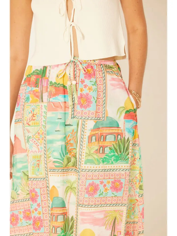 This full length skirt features a tie waist for the perfect fit and is adorned with hand beaded tassels for an added touch of boho chic. Embrace your playful side with this unique and stylish piece.