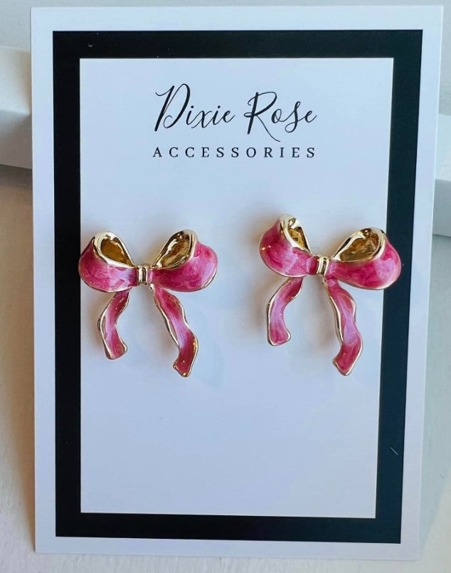 Adorable gold/ hot pink bow earrings. Nickle Free