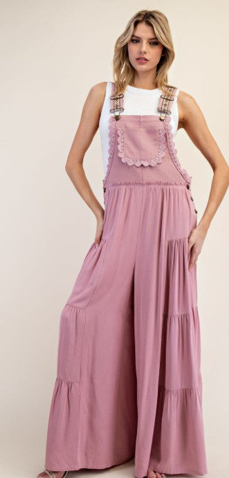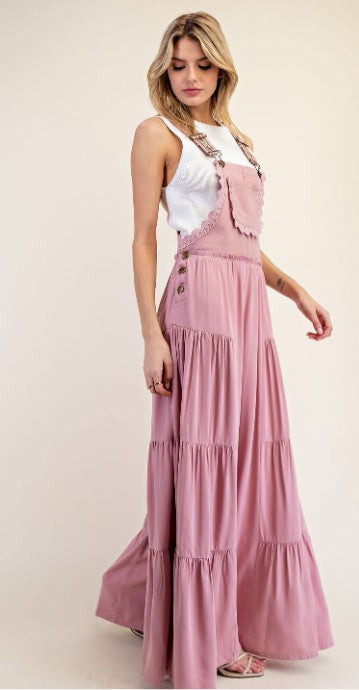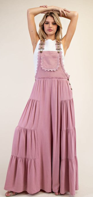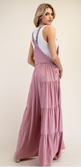 Solid sleeveless jumpsuit in Turkish Rose, that features printed adjustable