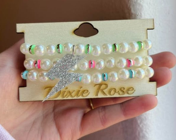 Comes with 3 Stretch Bracelets. They are super cute! Perfect for a lightning game!