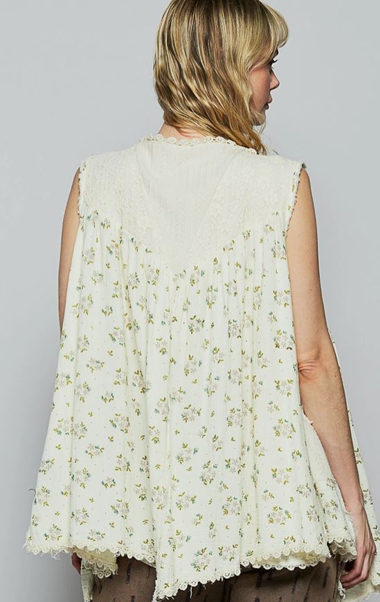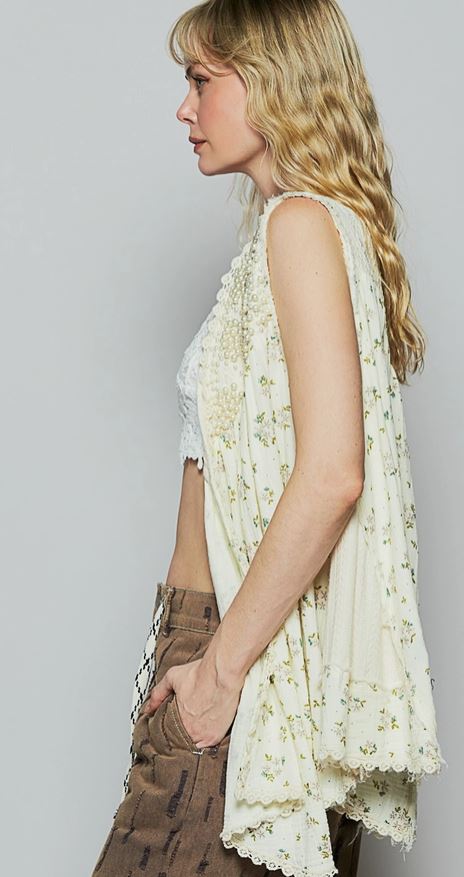 This beautiful Cardigan is Designed in open cardigan, sleeveless, A-line fit top in printed double gauze with pearl detail pointed floral pattern. It has beautiful pearl detail on it too! So cute to add to any outfit!