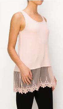 Our classic wide-strap tank top is made from a stunningly soft fabric. With a flirty lace layer, it is a piece that adds a gorgeous and feminine flair to any outfit. An absolute closet staple thanks to its versatility and chic comfortability.