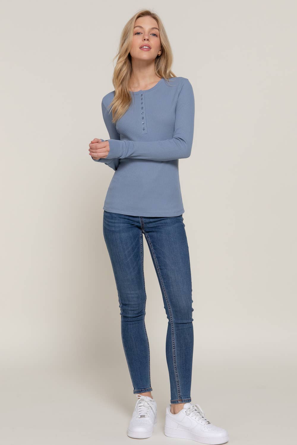 LONG SLEEVE HENLEY THERMAL KNIT TOP FABRIC: THERMAL 58% COTTON 39% POLYESTER 3% SPANDEX It is a thermal, so it warm and perfect to layer!, It is definitely a must have!