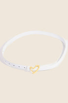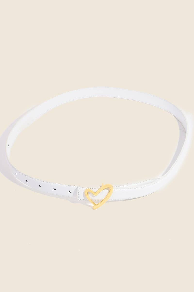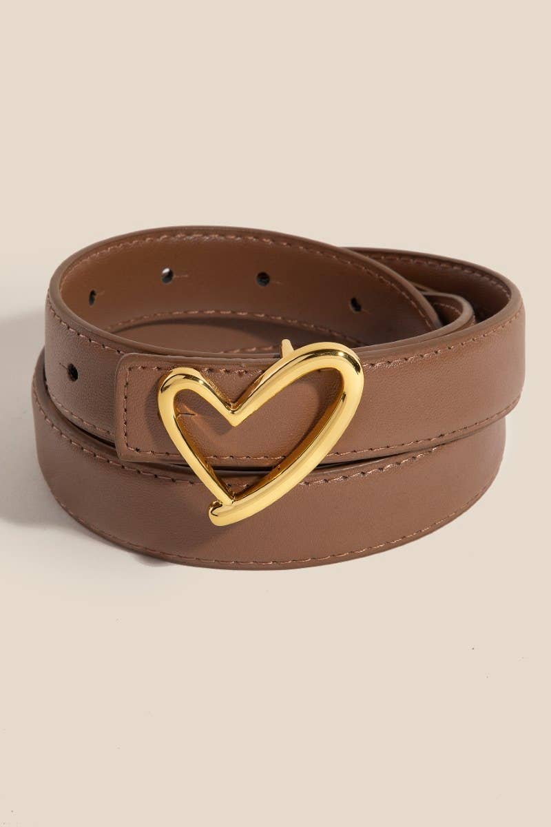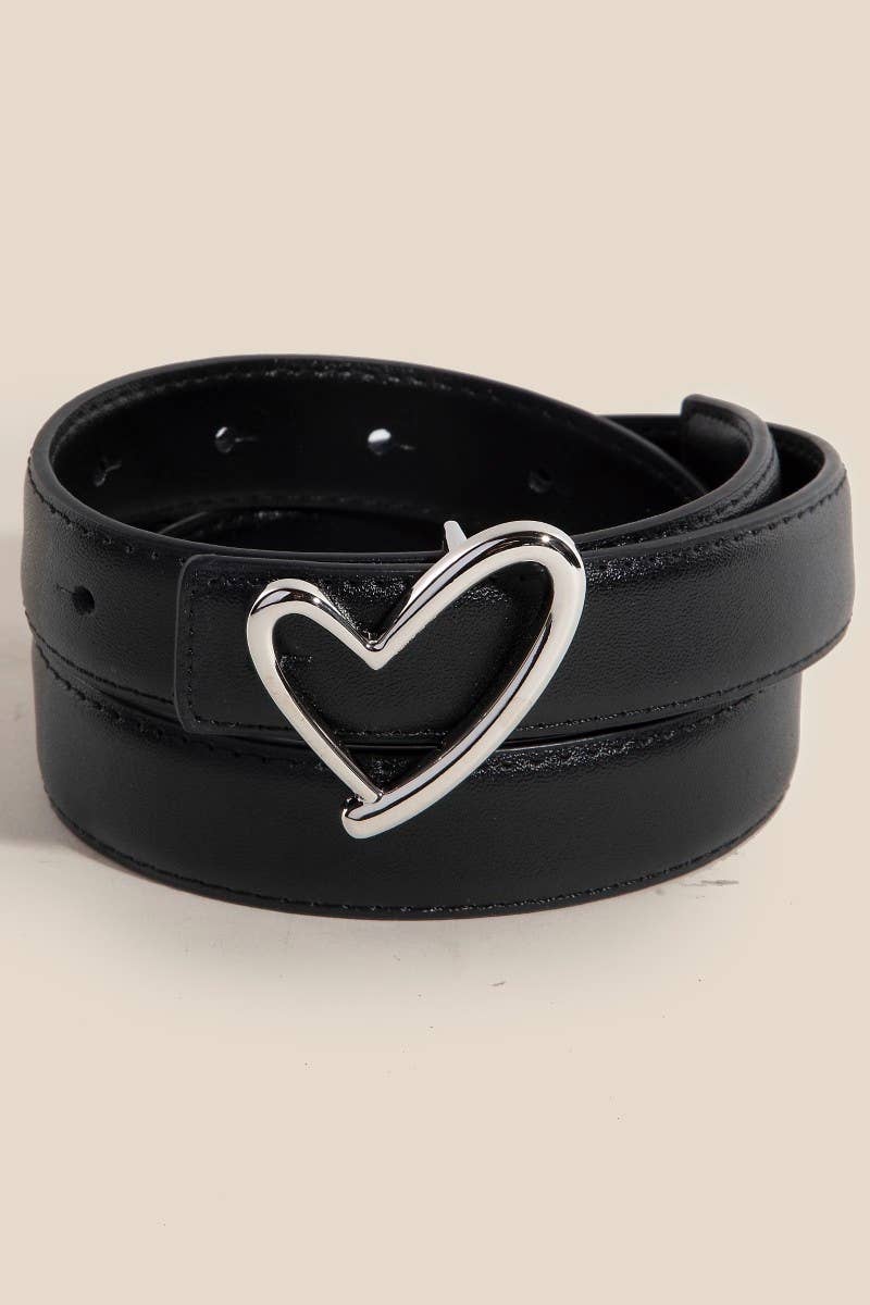 This season's hottest leather belt, this leather belt offers a remarkable metallic heart buckle design. Elevate your personal style effortlessly with this versatile leather belt, an essential component for a refined wardrobe. This leather belt approximately measures: Length: 39.5 Inches Width: 1 Inches This leather belt is made with 90% Bonded Leather 10% Alloy