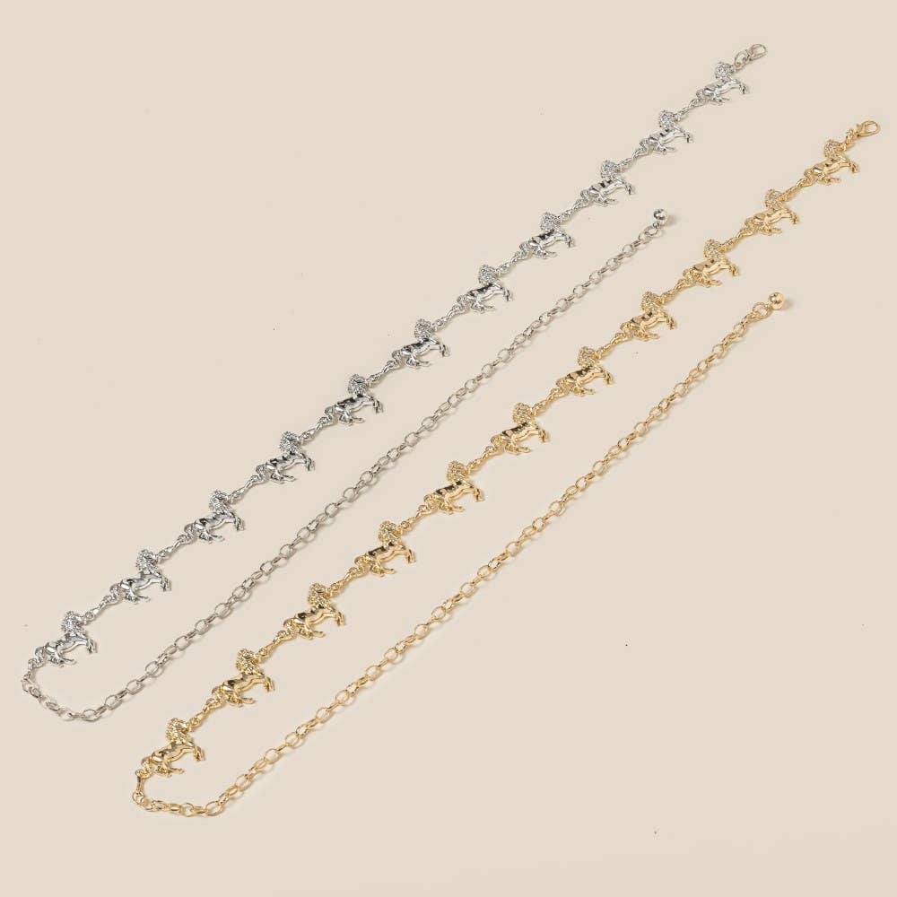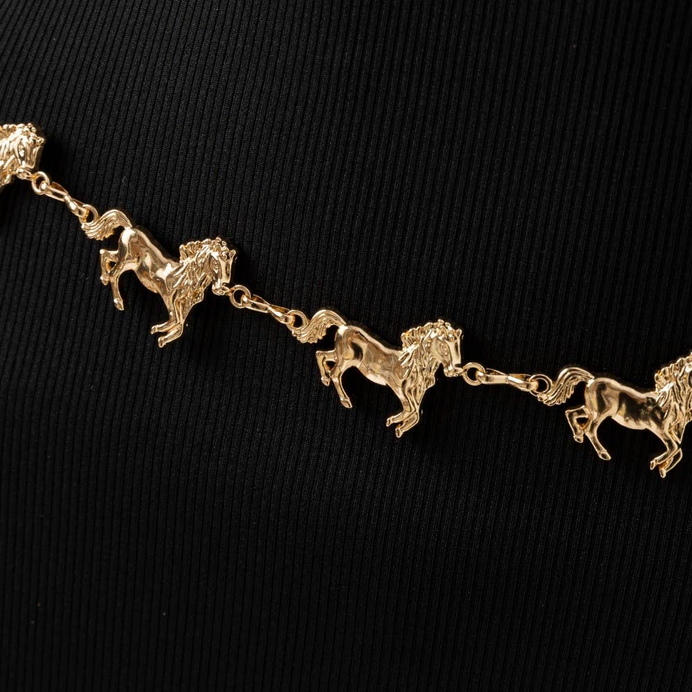 The perfect way to showcase your unique style, this chain belt radiates a sleek multi horse design. Elevate your everyday style with this versatile chain belt, a simple yet impactful addition to your fashion repertoire. This chain belt approximately measures: Length: 24 Inches Extension: 20 Inches This chain belt is made with 100% Alloy.