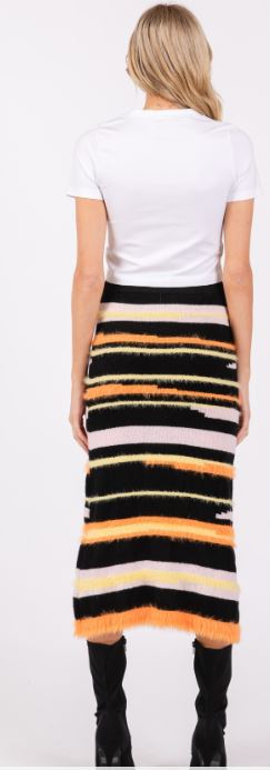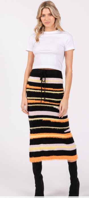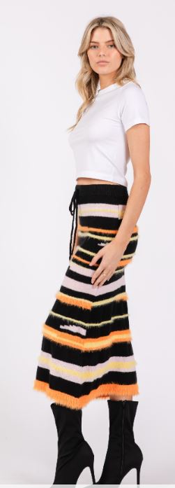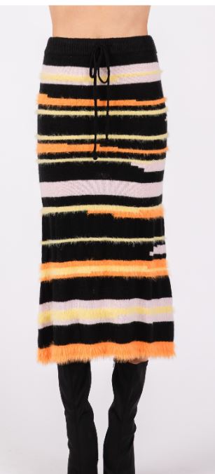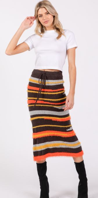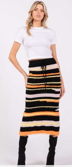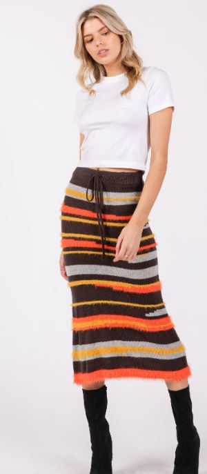 ELASTIC WAIST MID LENGTH MULTI STRIPE COLOR KNIT SWEATER SKIRT