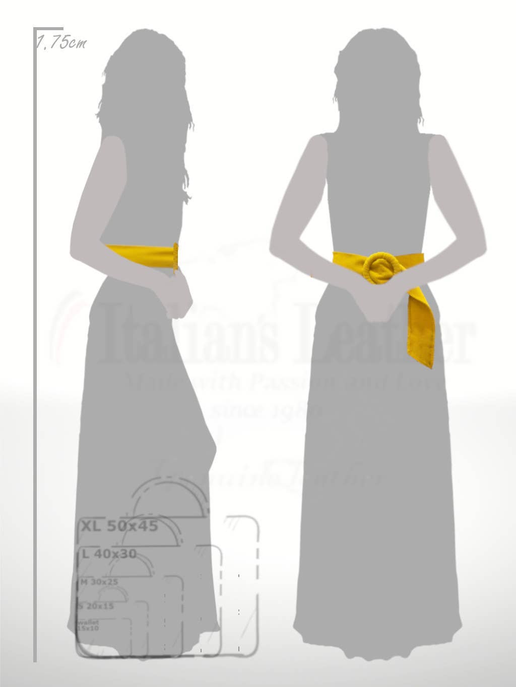 Genuine Cowhide Leather (Suede) Buckle: Metallic leather lined This leather belt may have minor color variations and may not match the image presented perfectly, because its production is handmade and the leather has natural variations. The skin may have more or less deep natural veins, on the front and/or on the back. This is not a defect, but a unique brand that features only real skin. Dimensions: width 7 cm Length: approx. 110 cm