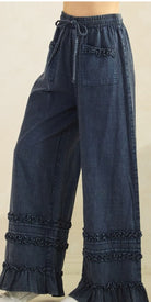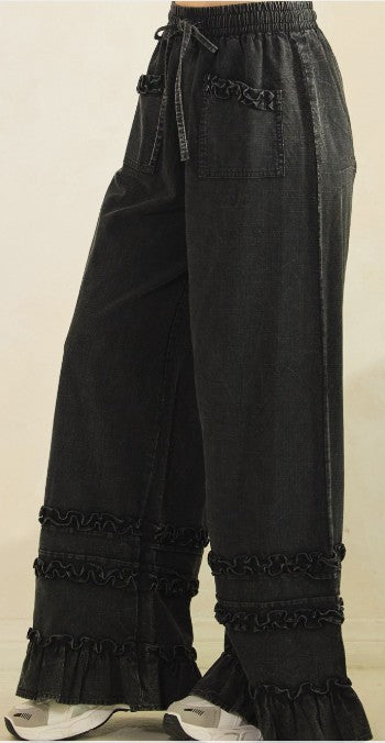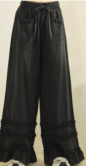 - RUFFLE TRIM DETAIL ON ANKLE AND HEM