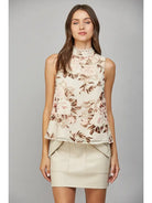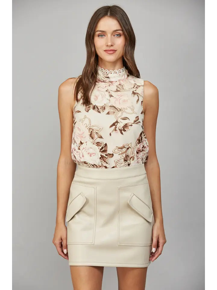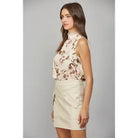 Sleeveless top with scallop tape, 52% rayon , 48% nylon 97% polyester, 3% spandex