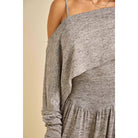 - Asymmetric off-shoulder neckline with strap detail