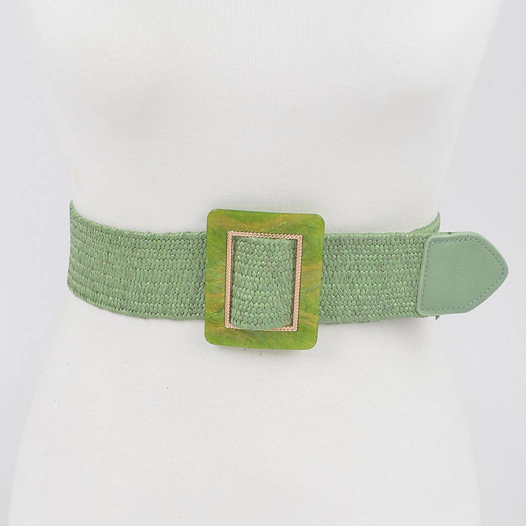 * Square buckle stretch belt * Approx. Width:1.85" Length:38"