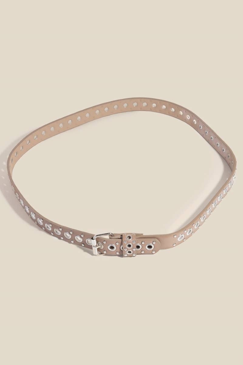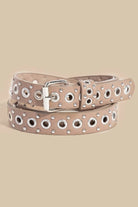 Upgrade your faux leather belt game, this faux leather belt brings a one-of-a-kind studs and grommet design. Perfect for any occasion, this versatile faux leather belt will enhance any outfit you wear. This faux leather belt approximately measures: Length: 41.5 Inches This faux leather belt is made with 100% Pu.