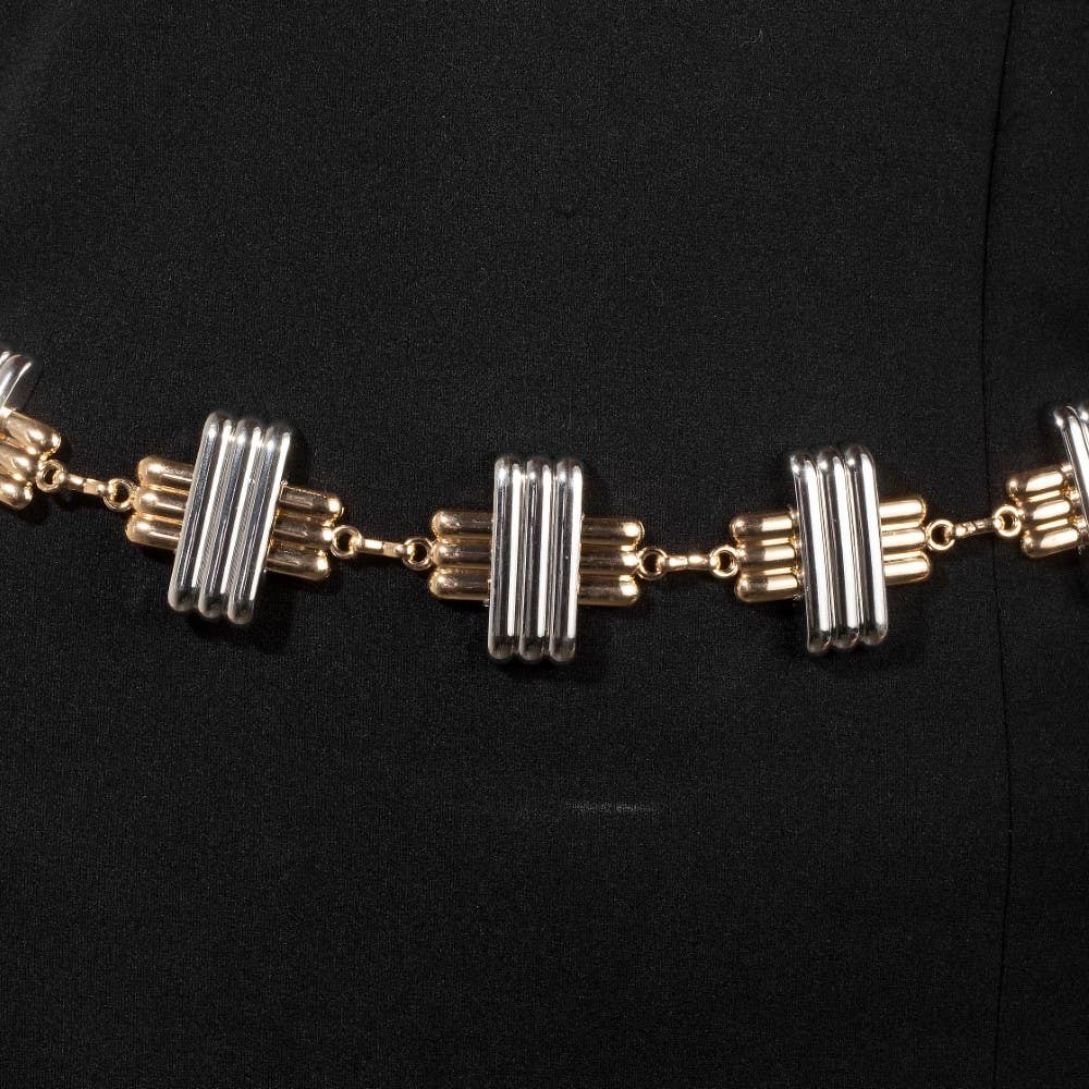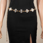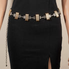 A must-have for any fashion-forward individual, this chain belt reveals an intricate two tone layered bars design. Unleash the potential of your wardrobe with this versatile chain belt, ensuring a touch of elegance in every ensemble. This chain belt is made with 100% Alloy. Made in China.