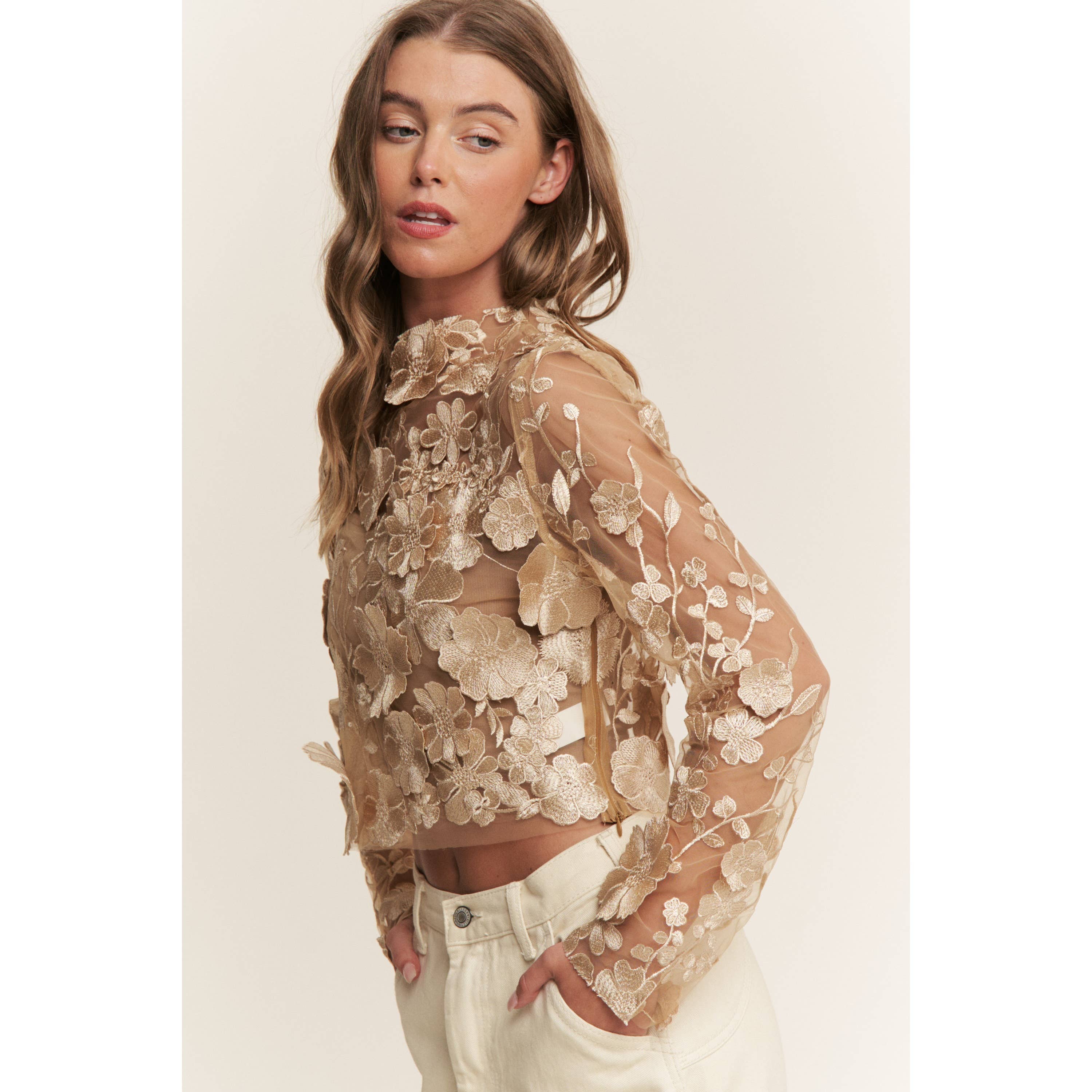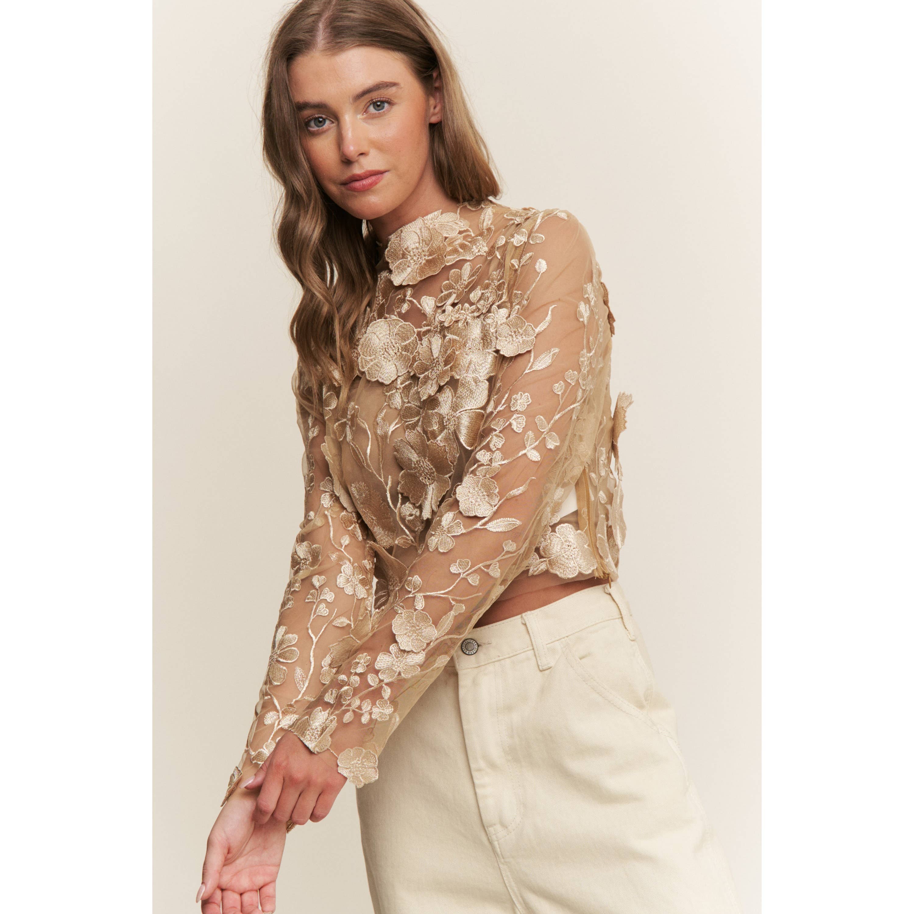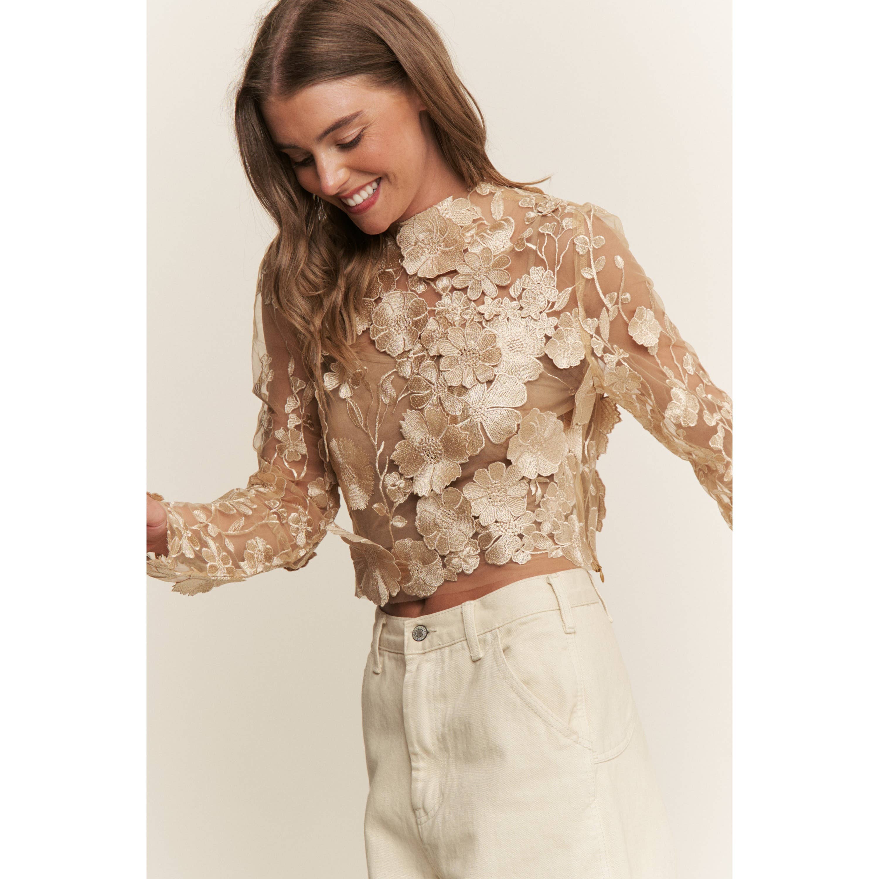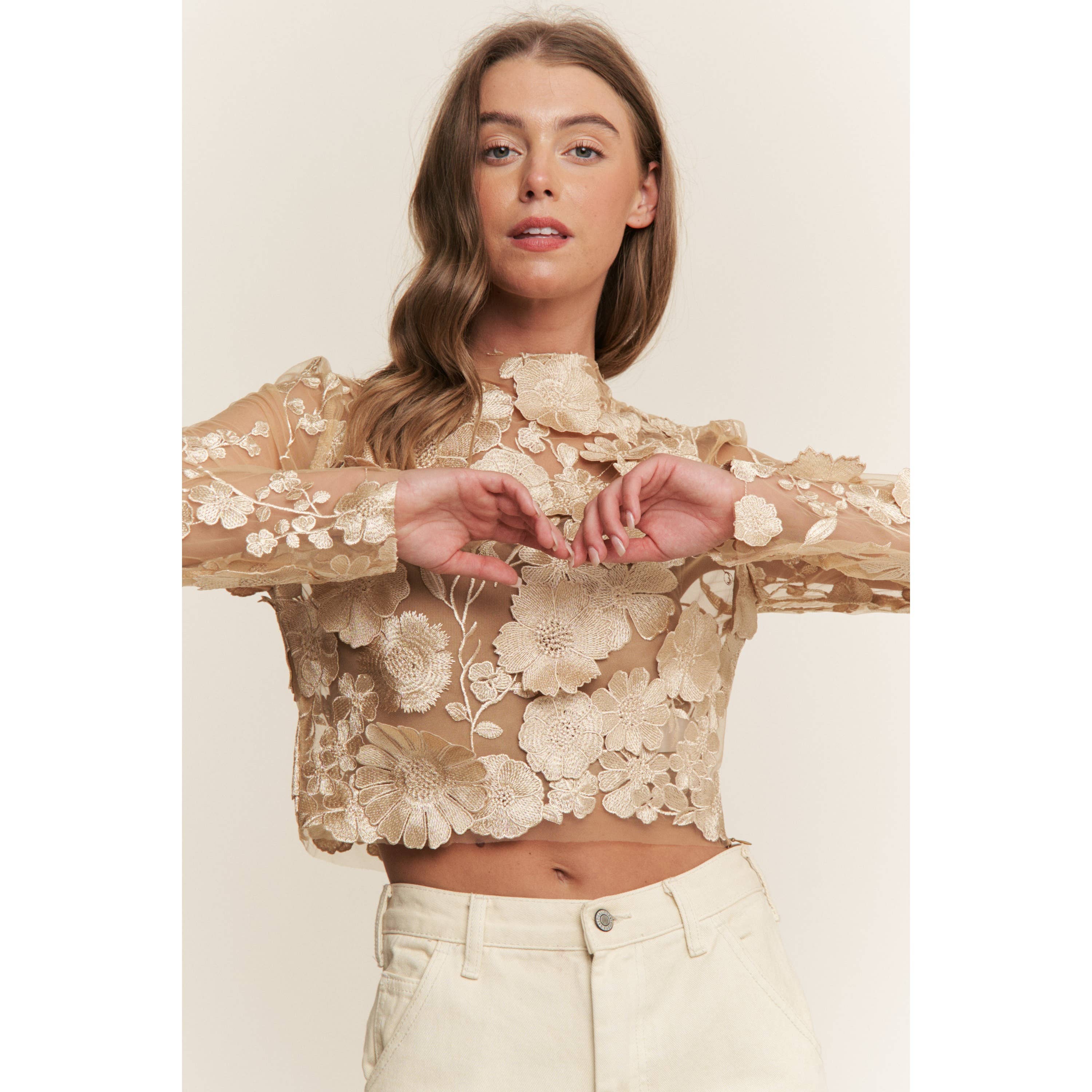 Beautiful embroidery floral top - Simple long sleeves crop design - Raw edges on the sleeve and body hemlines - Invisible zipper on the side seam - Button & loop on the center back neckline - No lined