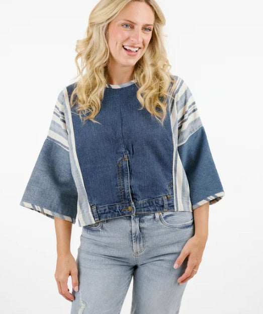 Using deconstructed denim and upcycling into our designs diverts it from the landfills and gives it new life. Our 100% Cotton yarn has been dyed with natural indigo by 3rd generation indigo farmers. Each sweater is then hand-loomed in partnership with our artisans in Chiang Mai, Thailand. We are motivated by making positive change, with beautiful handknits and upcycled pieces. Each piece is collaboratively produced telling a story with each stitch.