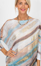 Multicolor Abstract Wave Print Sweater, Gold detail.
