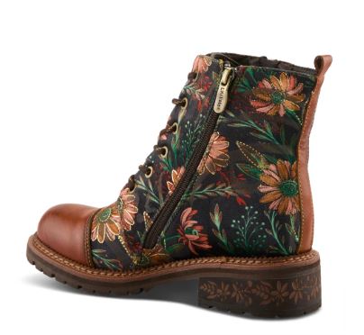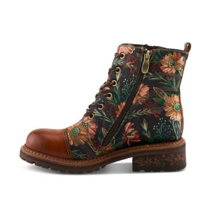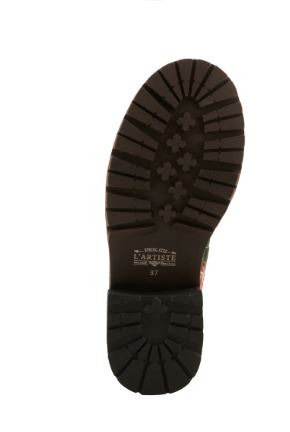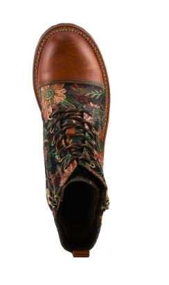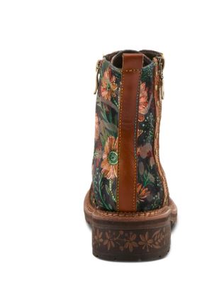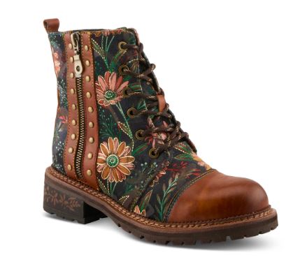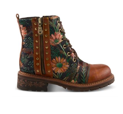 Step into an artful blend of rugged charm and chic design with these statement boots. Featuring a rich leather combo upper, these boots are adorned with intricate floral embroidery and signature rainbow stitching details for a modern, artistic touch. The inside zipper ensures easy wear, while the studded accents and cool etching details on the heel bring a bold edge. A durable lug sole provides excellent traction, making these boots as practical as they are stylish. Perfect for trendsetters who love a unique, handcrafted feel in their footwear.