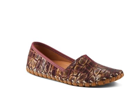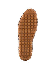 Crafted with a delicate croco pattern accented by a subtle metallic sheen, this polished flat exudes sophistication. Designed for all-day comfort, it features a detailed opanka hand-stitch construction, a sculpted yet flexible forefoot, and a removable insole. This versatile flat is the perfect go-to choice for everyday elegance and ease.