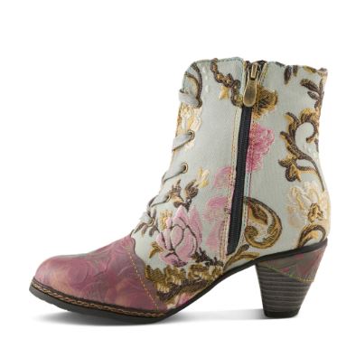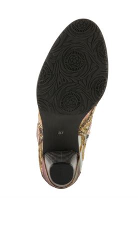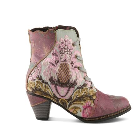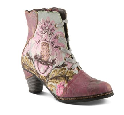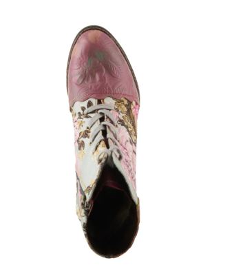We should include a warning label: "Buyer Beware! Plan on multiple delays due to compliments!" Stunning inside zipped embroidered lace up with leather tongue and keeper in one of our most popular silhouettes. She has a wavy continuous collar featuring carved leather inlay heel, outside back vertical curve and broad cap toe, nestling against a stunning abstract embroidered burst of flora and fauna. Inside printed leather linings and super padded foot beds.