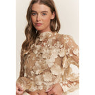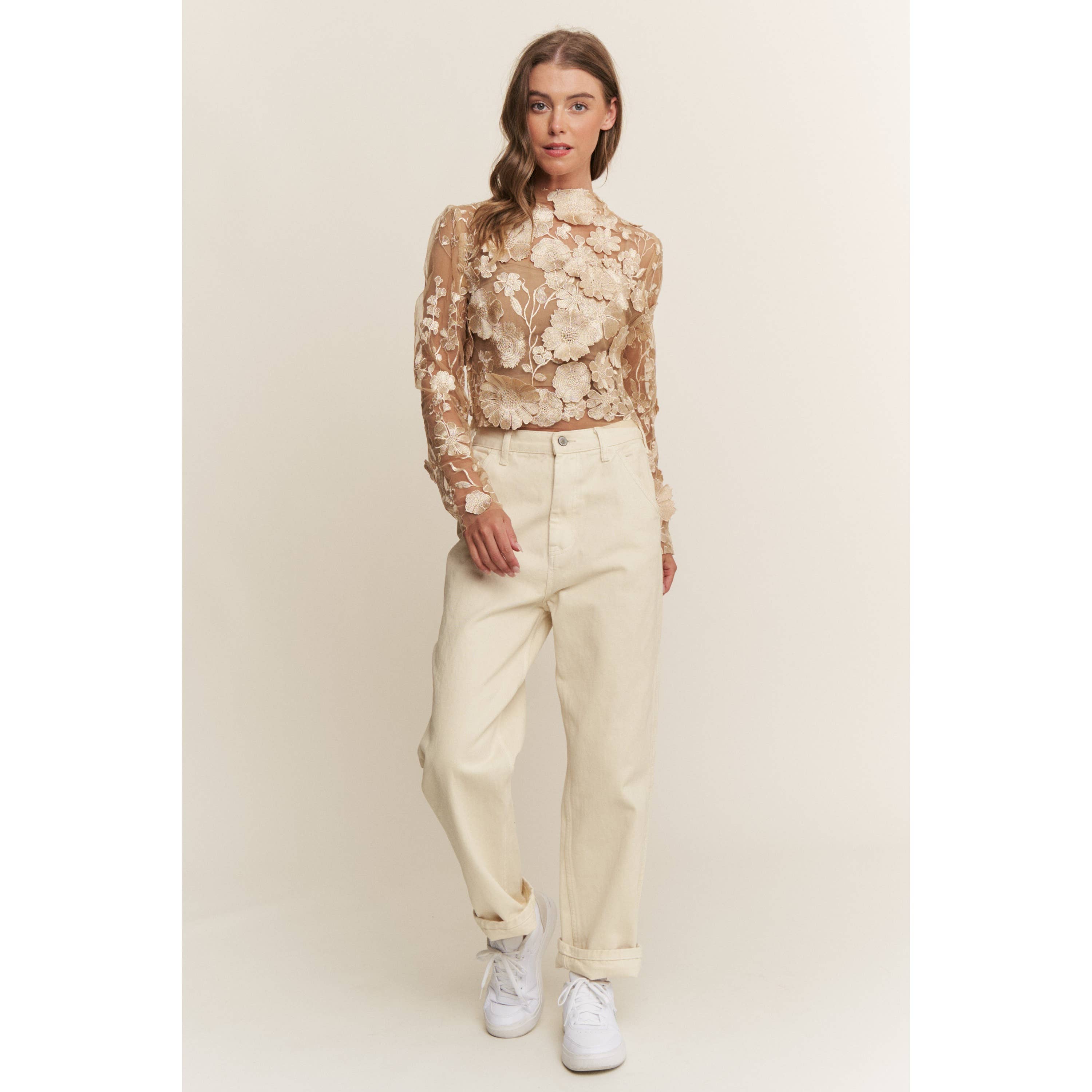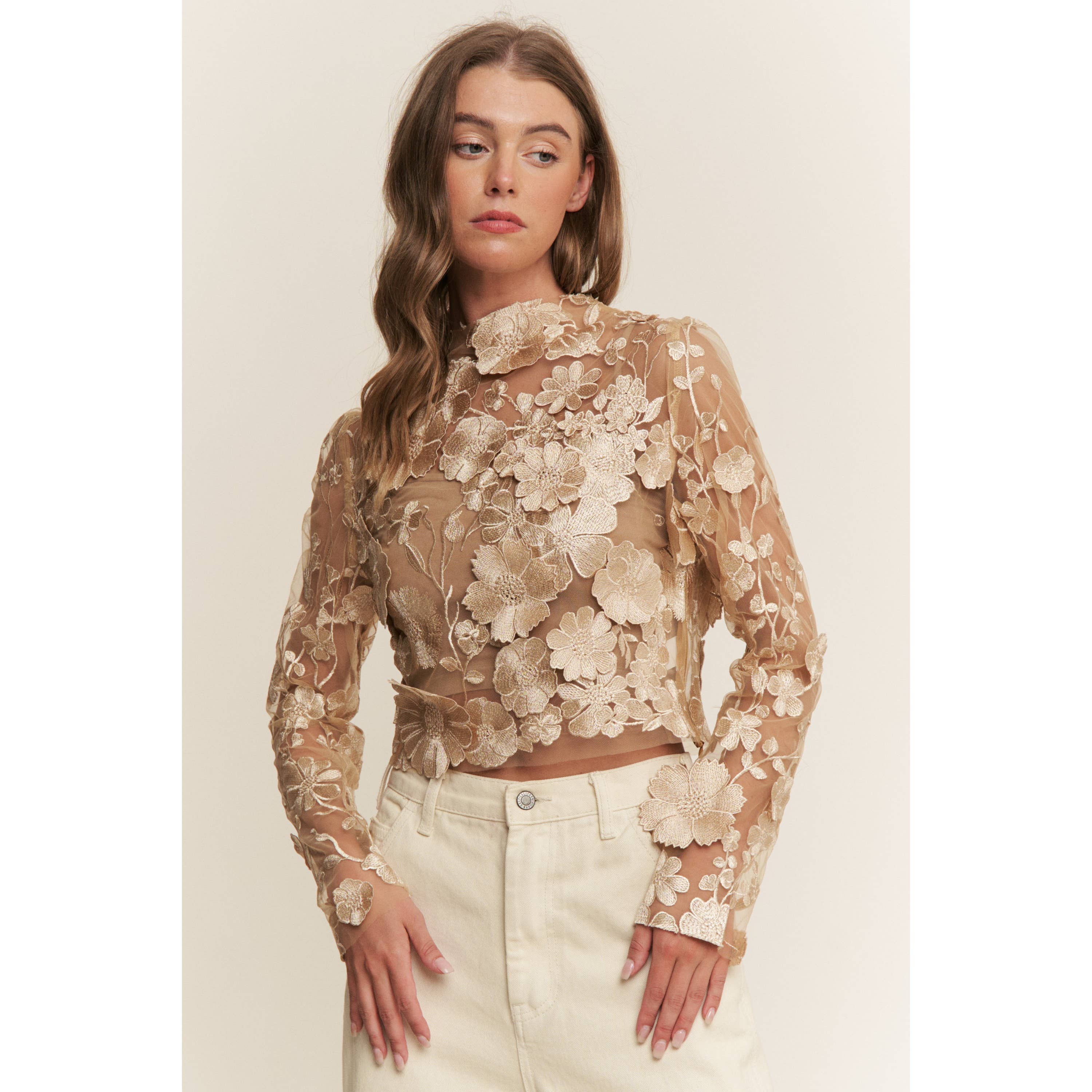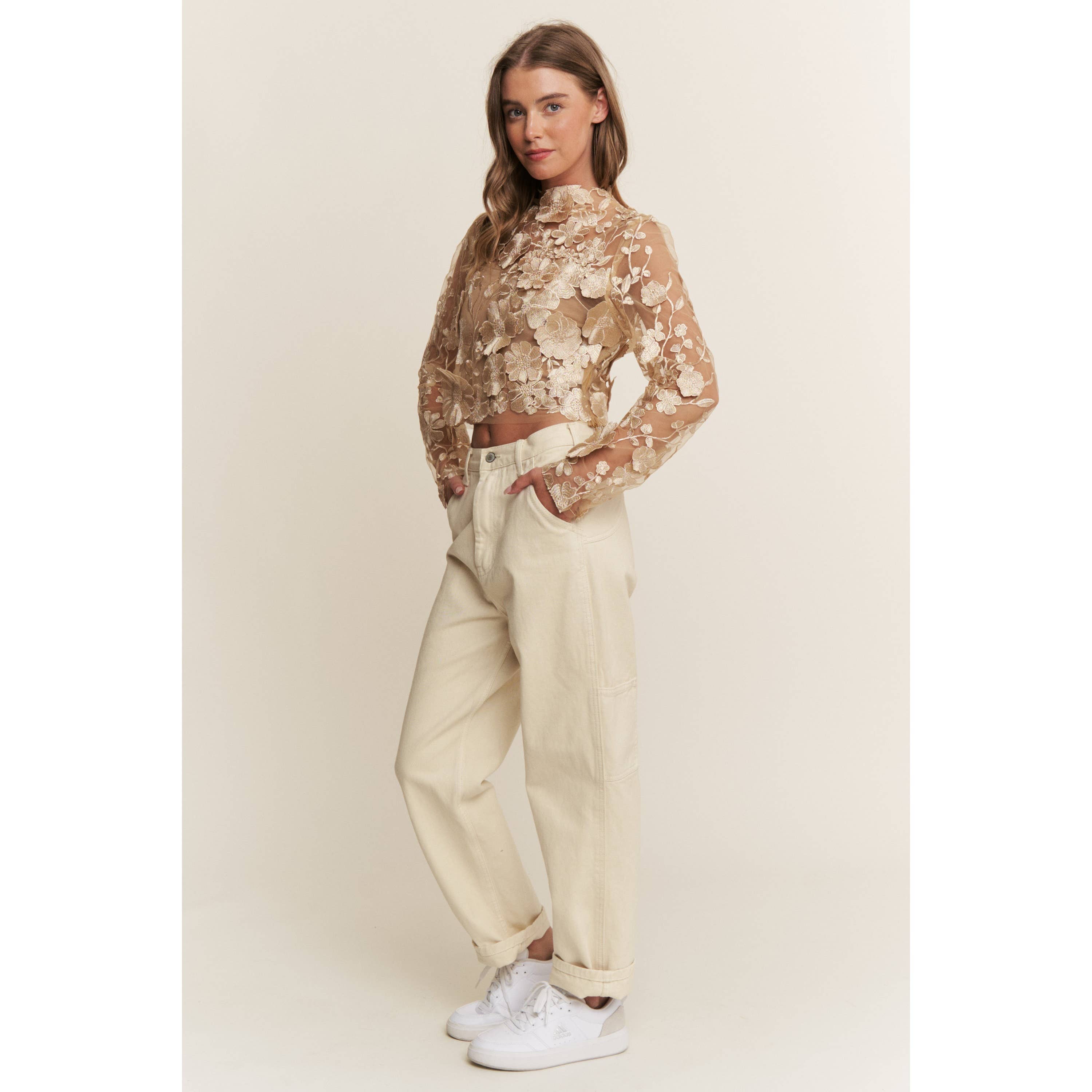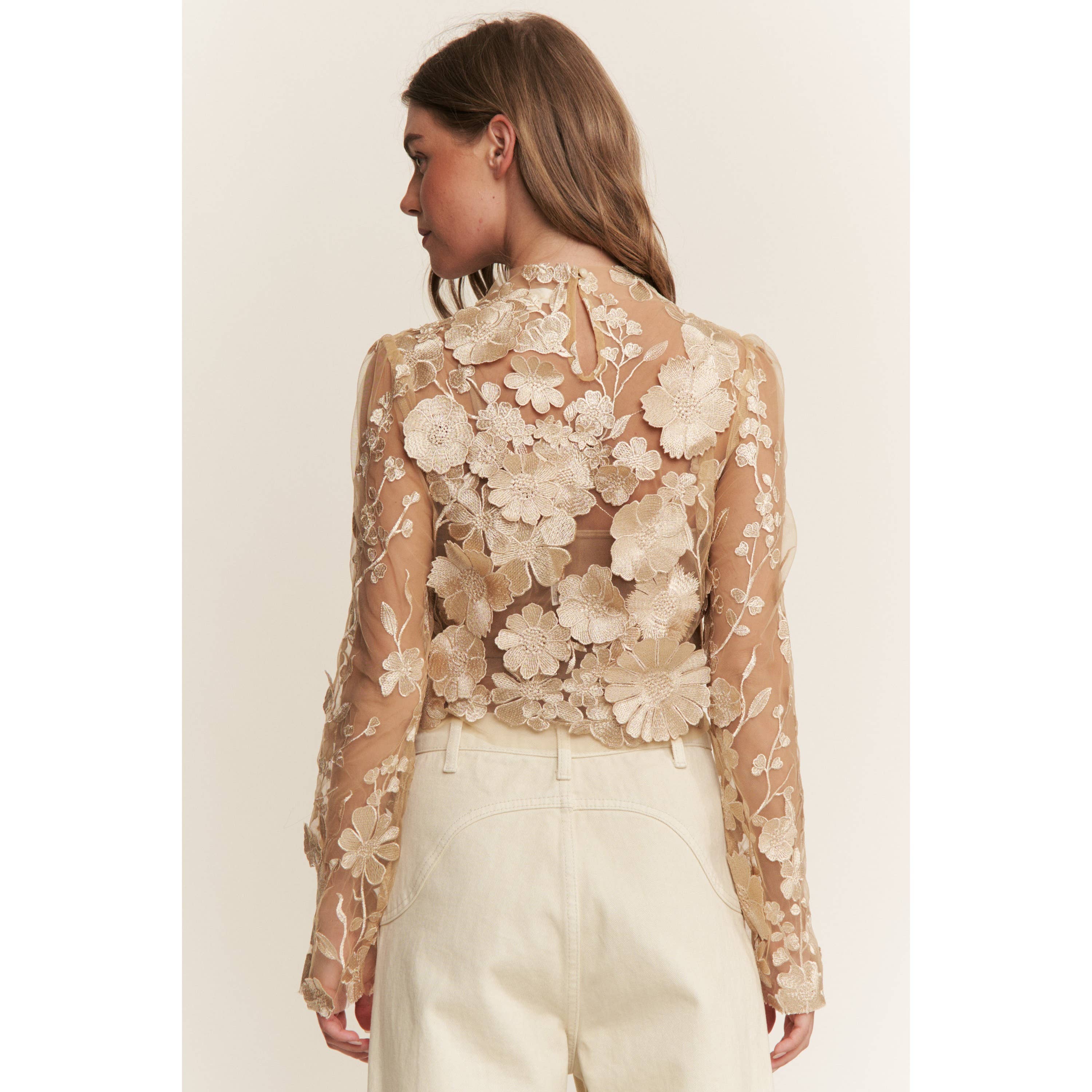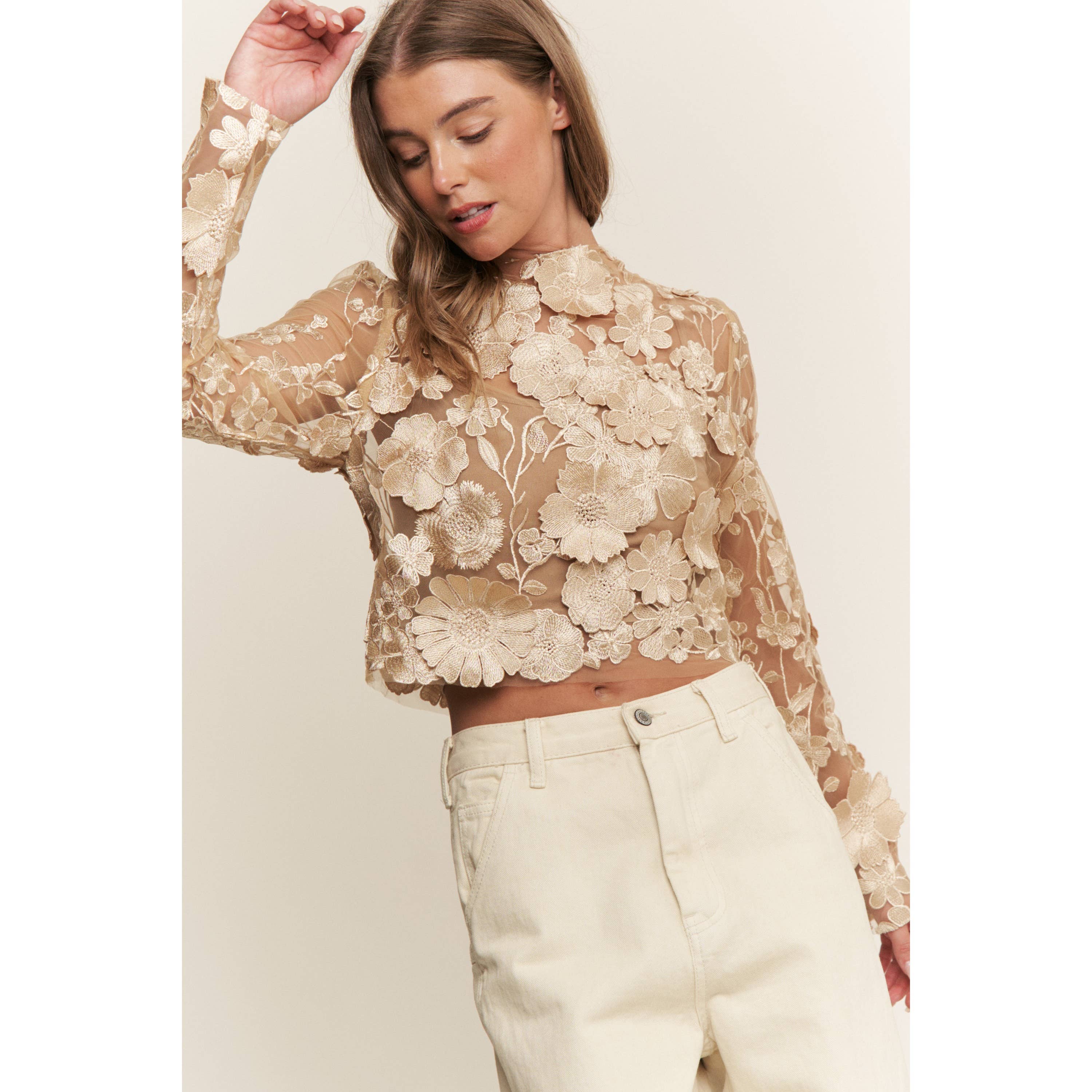 Beautiful embroidery floral top - Simple long sleeves crop design - Raw edges on the sleeve and body hemlines - Invisible zipper on the side seam - Button & loop on the center back neckline - No lined