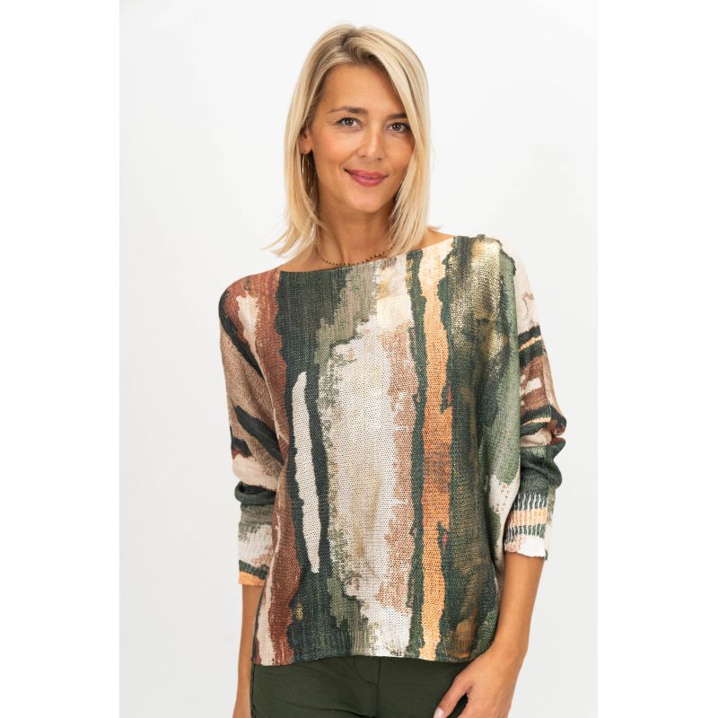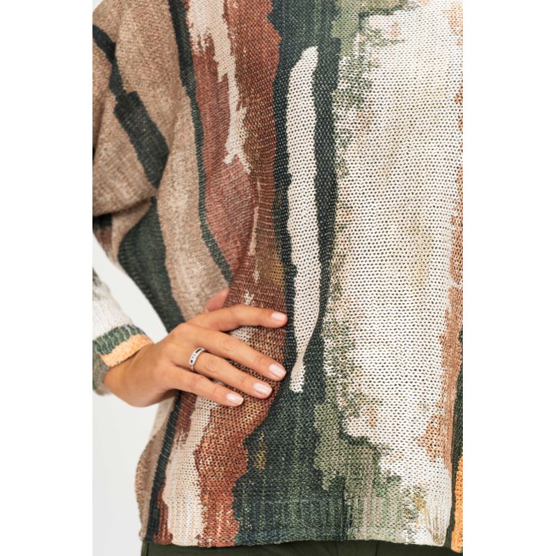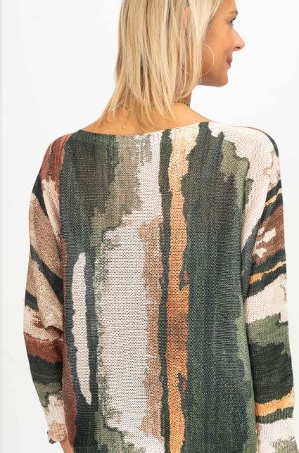 Abstract Multicolor Print Sweater, Gold foil detail. Long sleeves
