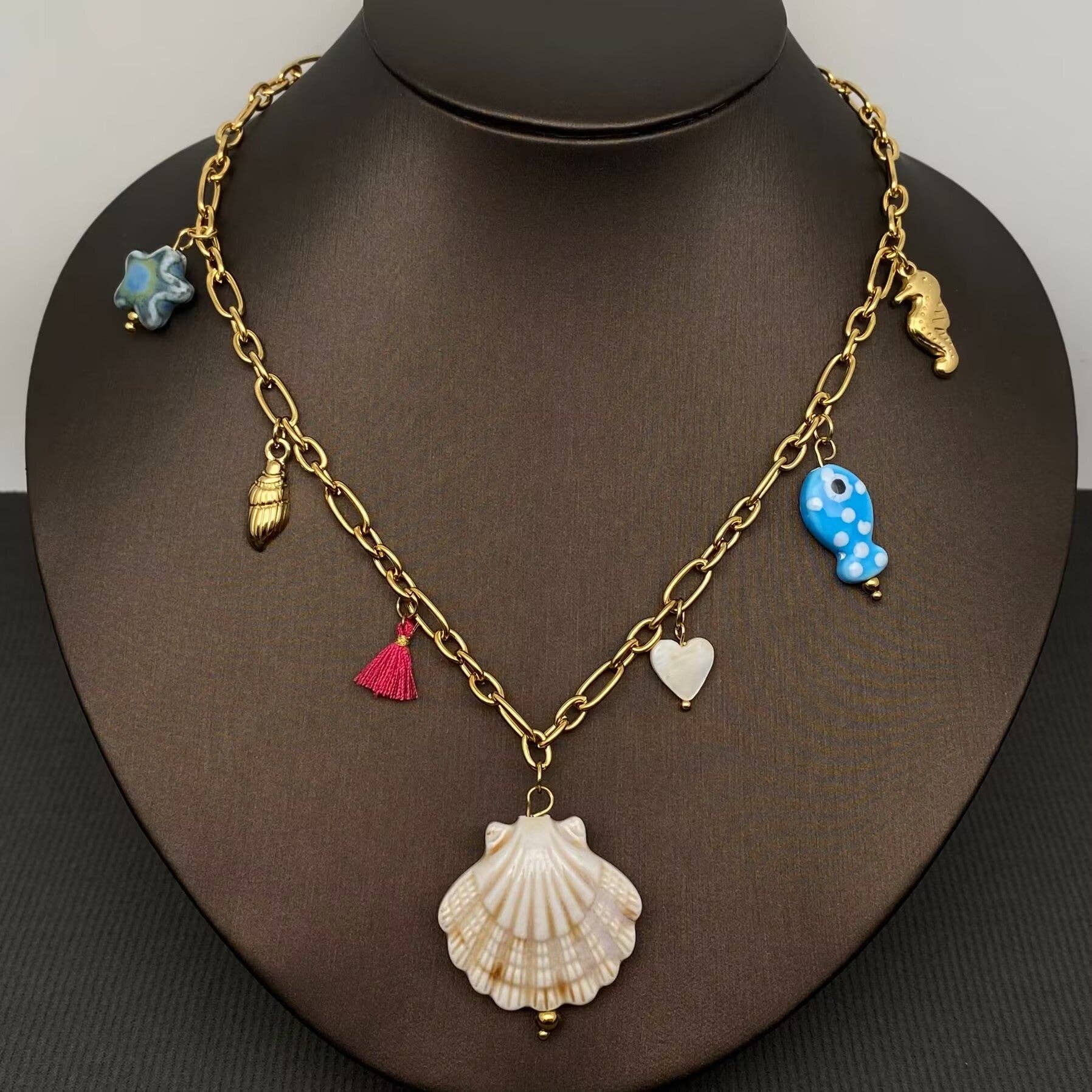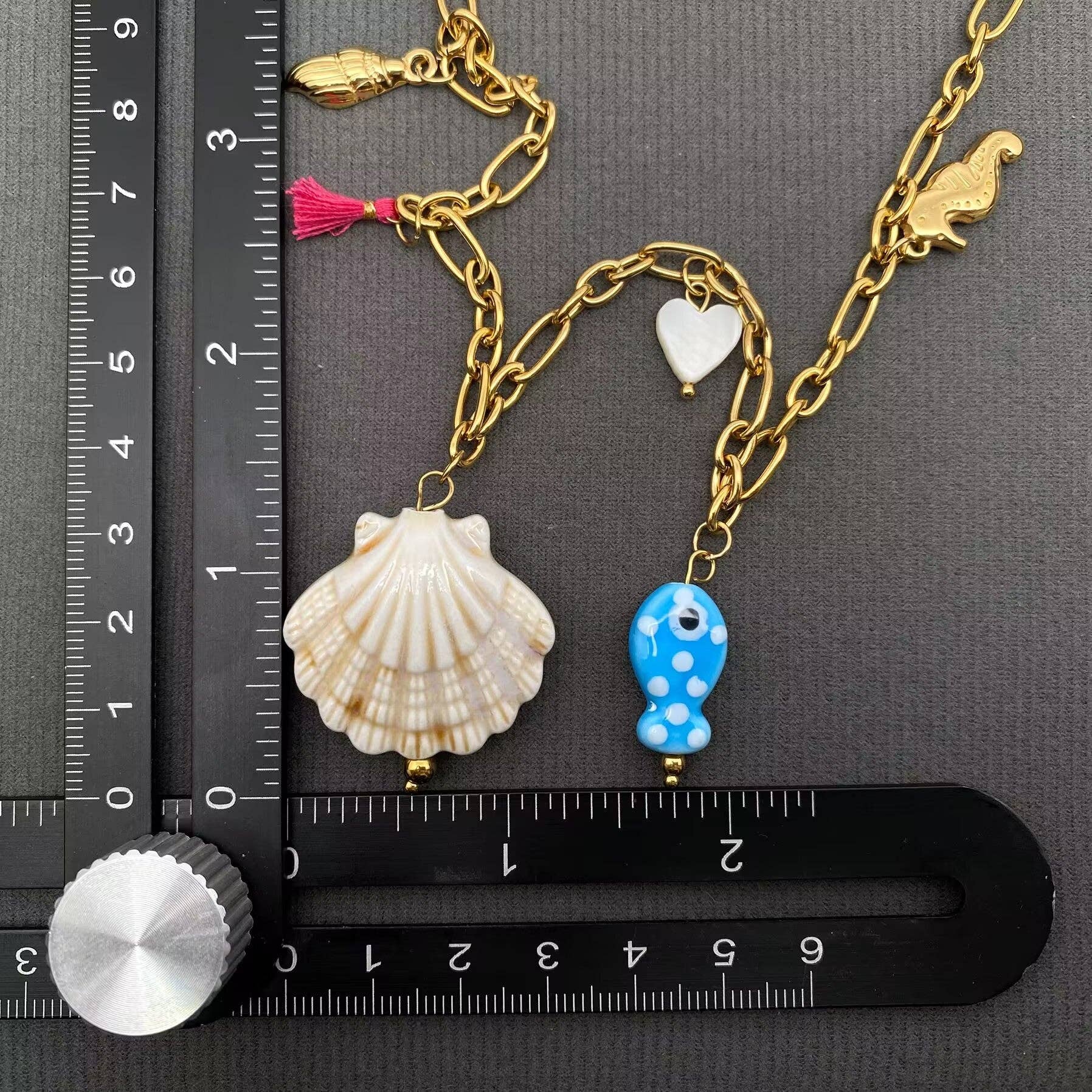 Type: pendant necklace Material: Stainless steel ,Ceramic,Thread,18K gold plated Size of pendant : 31mm * 33mm Length of chain :410mm +50mm Process: Vacuum electroplating and manual polishing, Non tarnish Surface : High Polish ★Made of high quality stainless steel, Lead-free, Harmless to Human Body. ★Perfect jewelry gifts