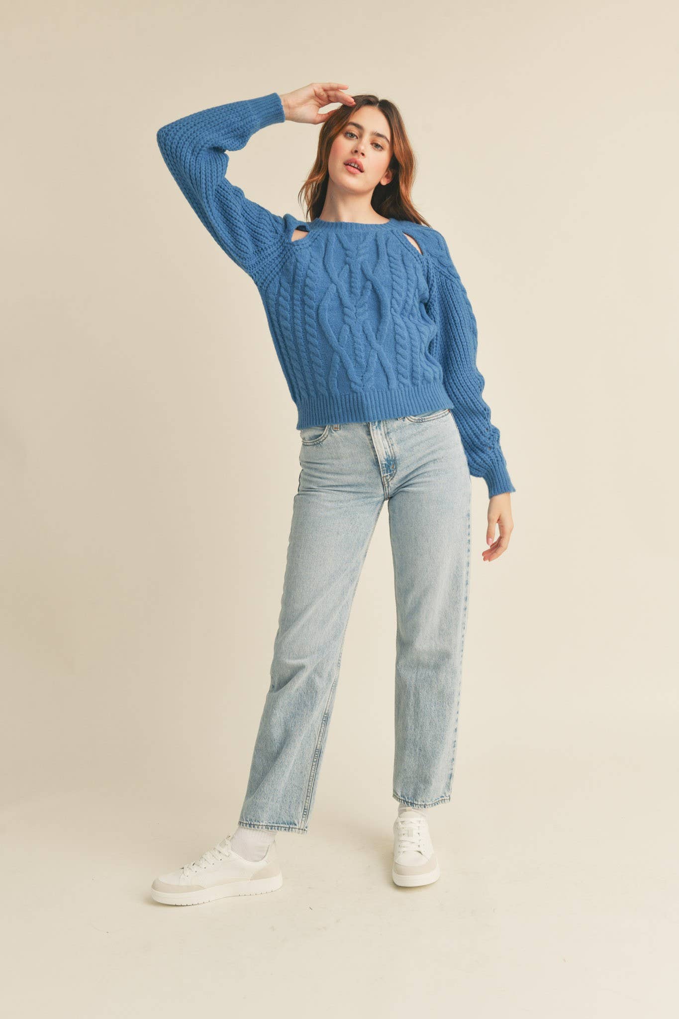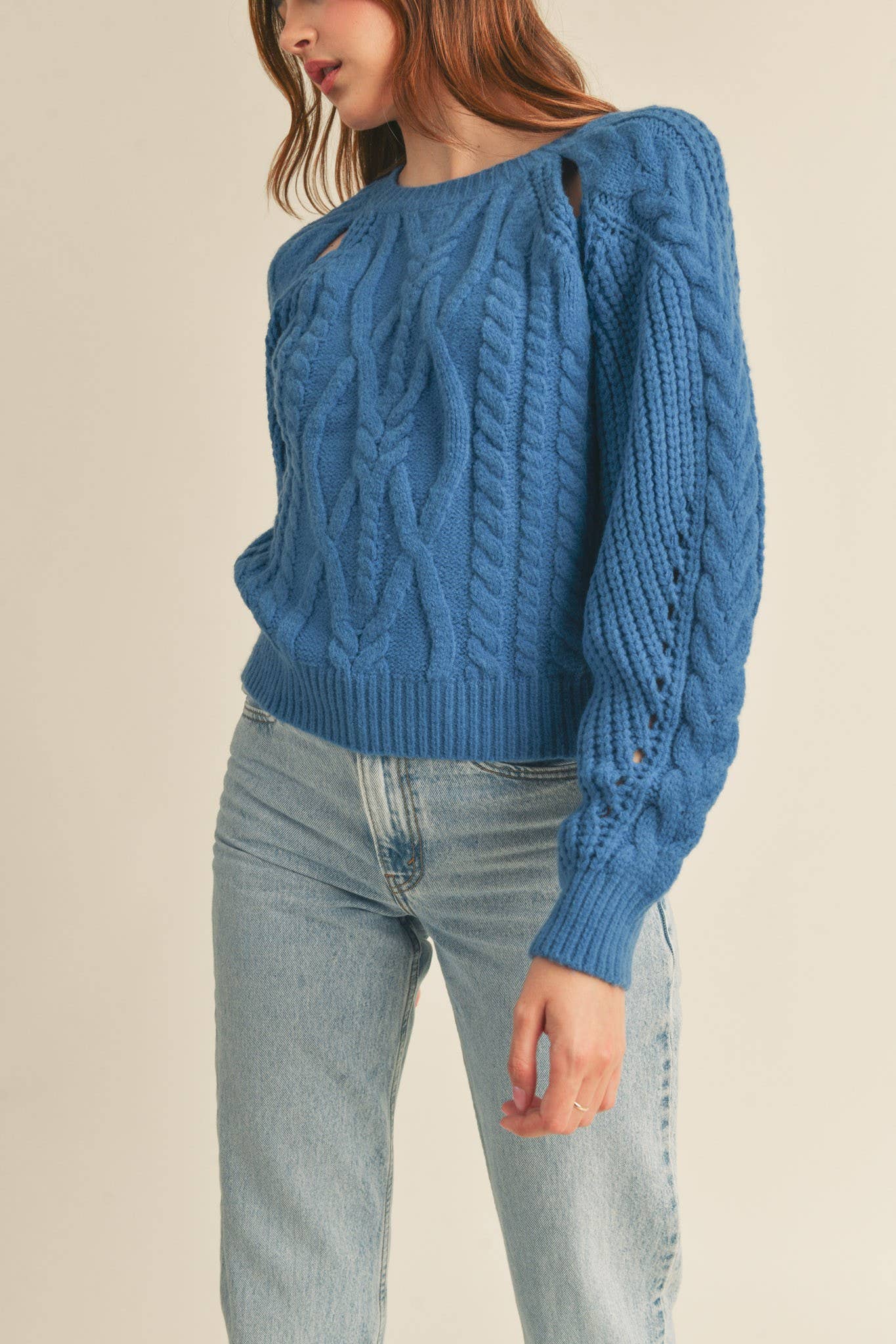 + Cable knit cut-out sweater