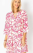 Flower printed baby doll Dress. 3/4 length sleeve w/ ruffle sleeve, half button-up closure, collar neckline, print on front and back, gathered ruffles tiers.