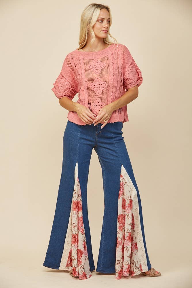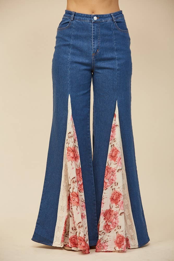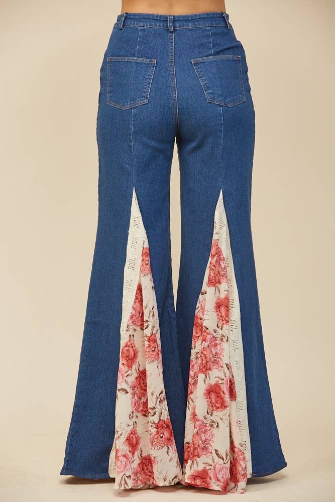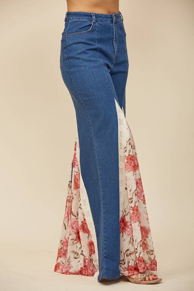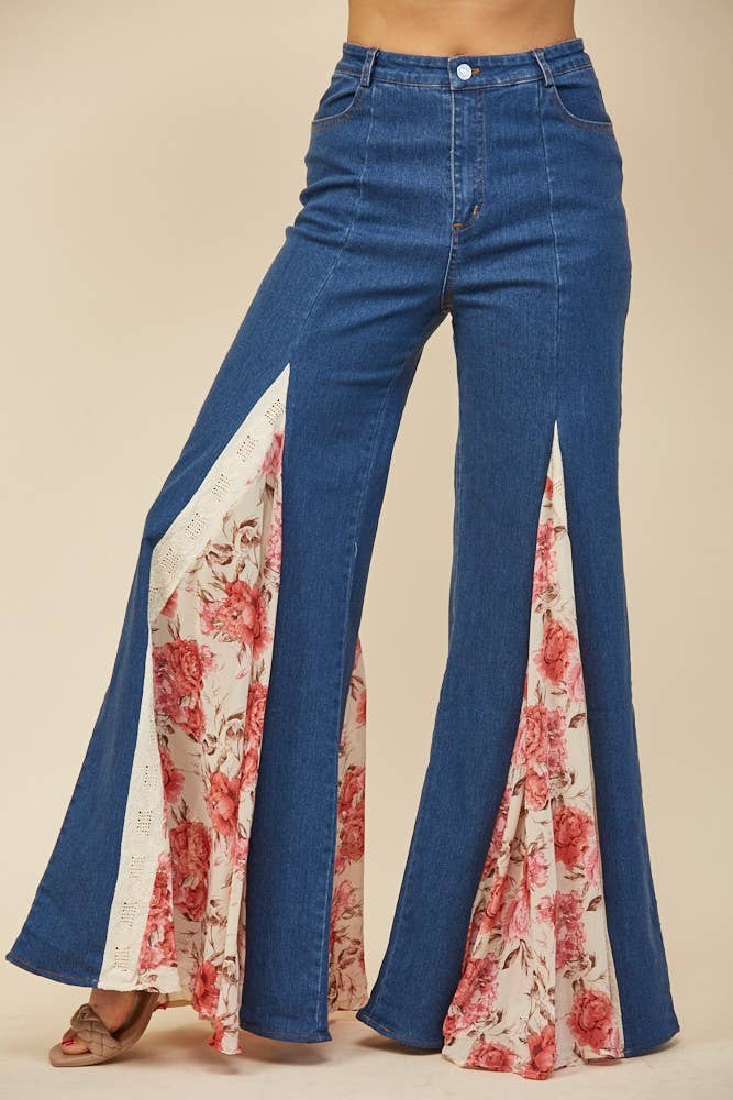 MIX MEDIA LACE DETAIL WIDE LEG JEANS