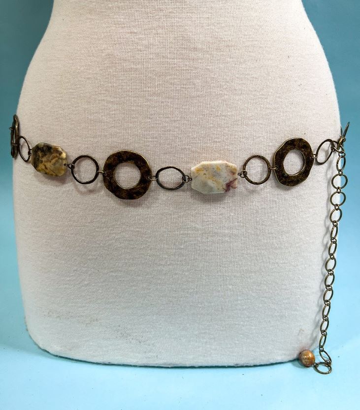 Metal chain belt with natural stones. Lobster claw closure. Color/texture may vary due to natural material. Length: 46" ...