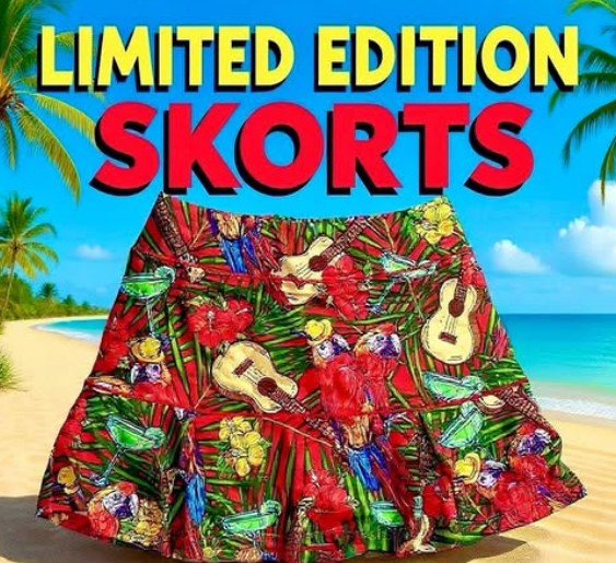 Our Parrot Beach Party design is perfect for the island hopping girl you aspire to be someday. With parrots in fedoras, limes, guitars and margaritas, you’re just a party waiting to happen! Sizes Small through XL available. Small (0/2) Medium (4/6) Large (8/10) , XL (12/14) Sporty Lengths: Small 14” / Medium 14” / Large 16” / XL 16”