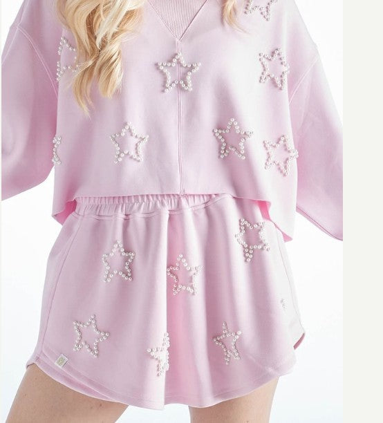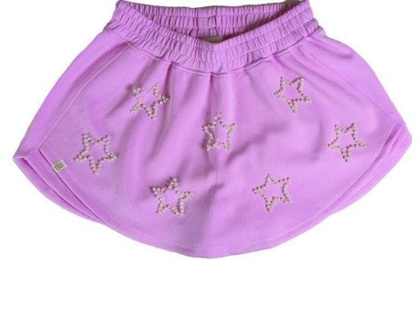 inject some fun into your look with this playful skort. It features faux pearl outlined star designs, interior short, elastic waistband with draw cord, and Simply Southern logo label at hem. Made of 48% modal 48% polyester 4% spandex.