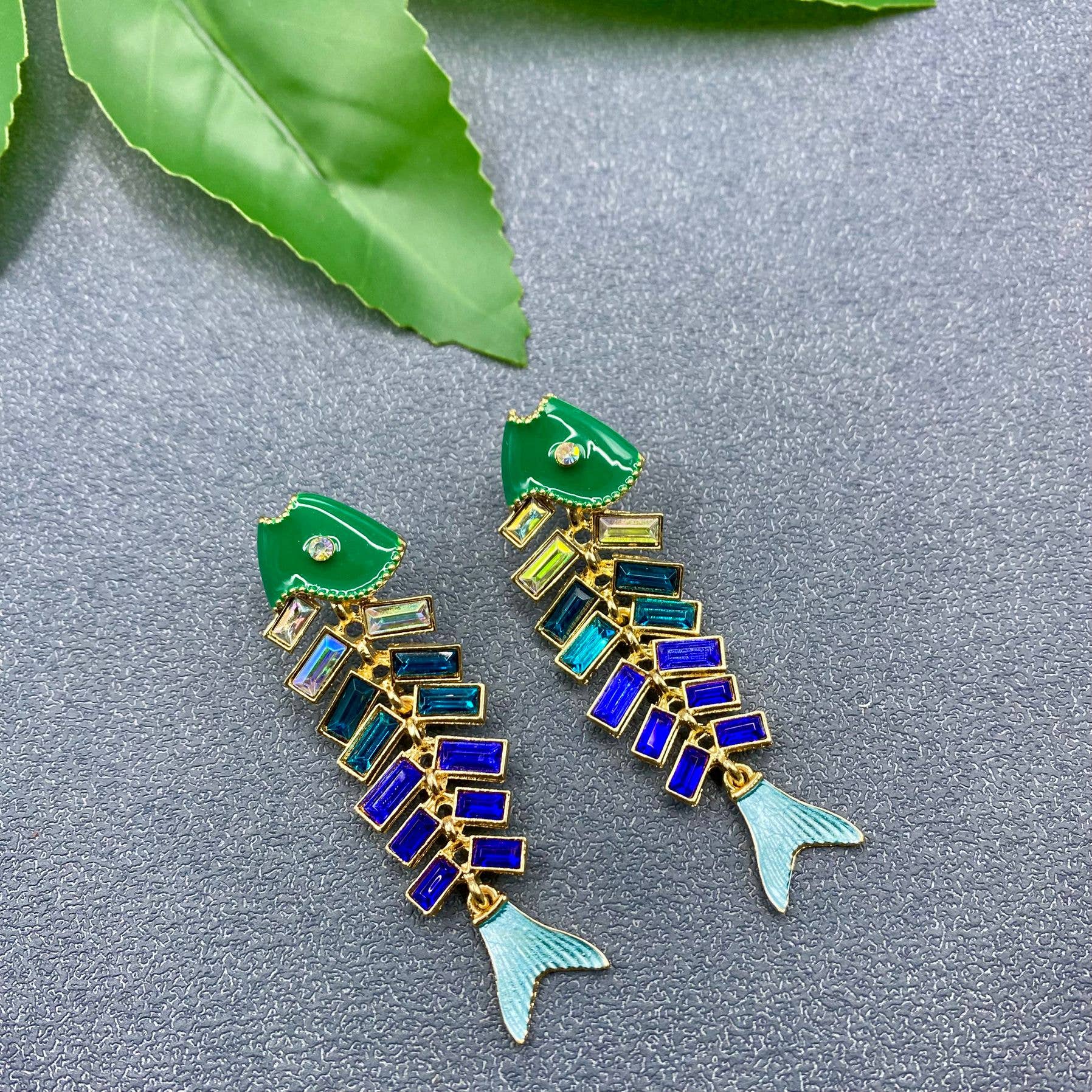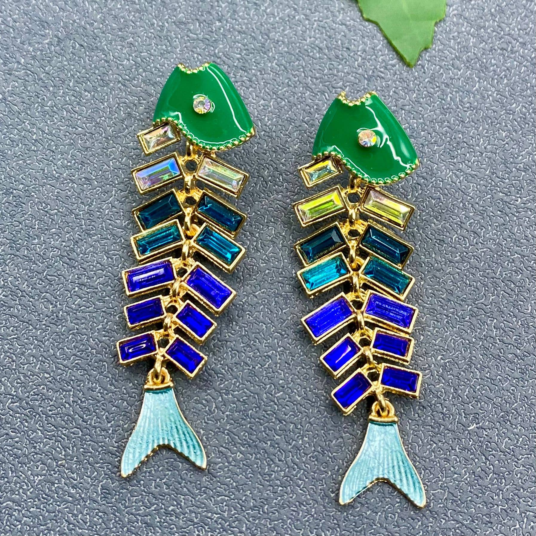 Type: earrings Material : Alloy, Rhinestone, Enamel Size : 16mm*65mm ★Made of high quality material, Nickel-free / Lead-free, Harmless to Human Body. ★Perfect jewelry gifts