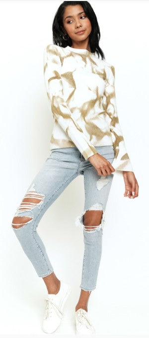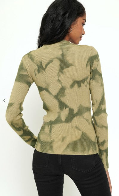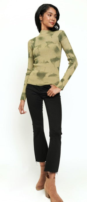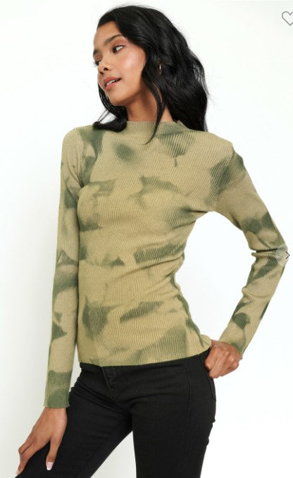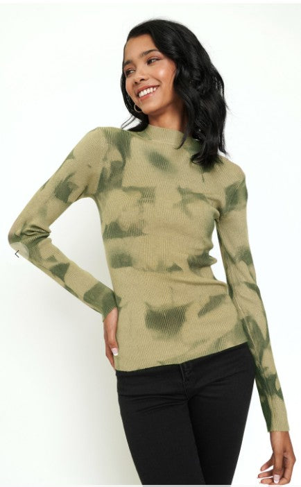 Tie Dye Mock Neck Rib Sweater Long sleeve Fitted style -50% Viscose, 25% Polyester, 25% Polyamide -Model wears: S / Model height: 5' 9"