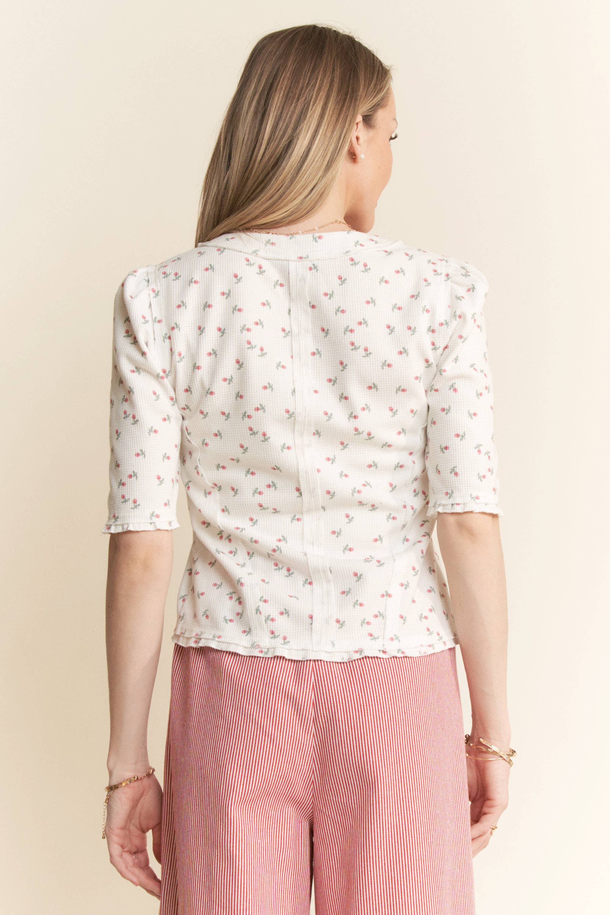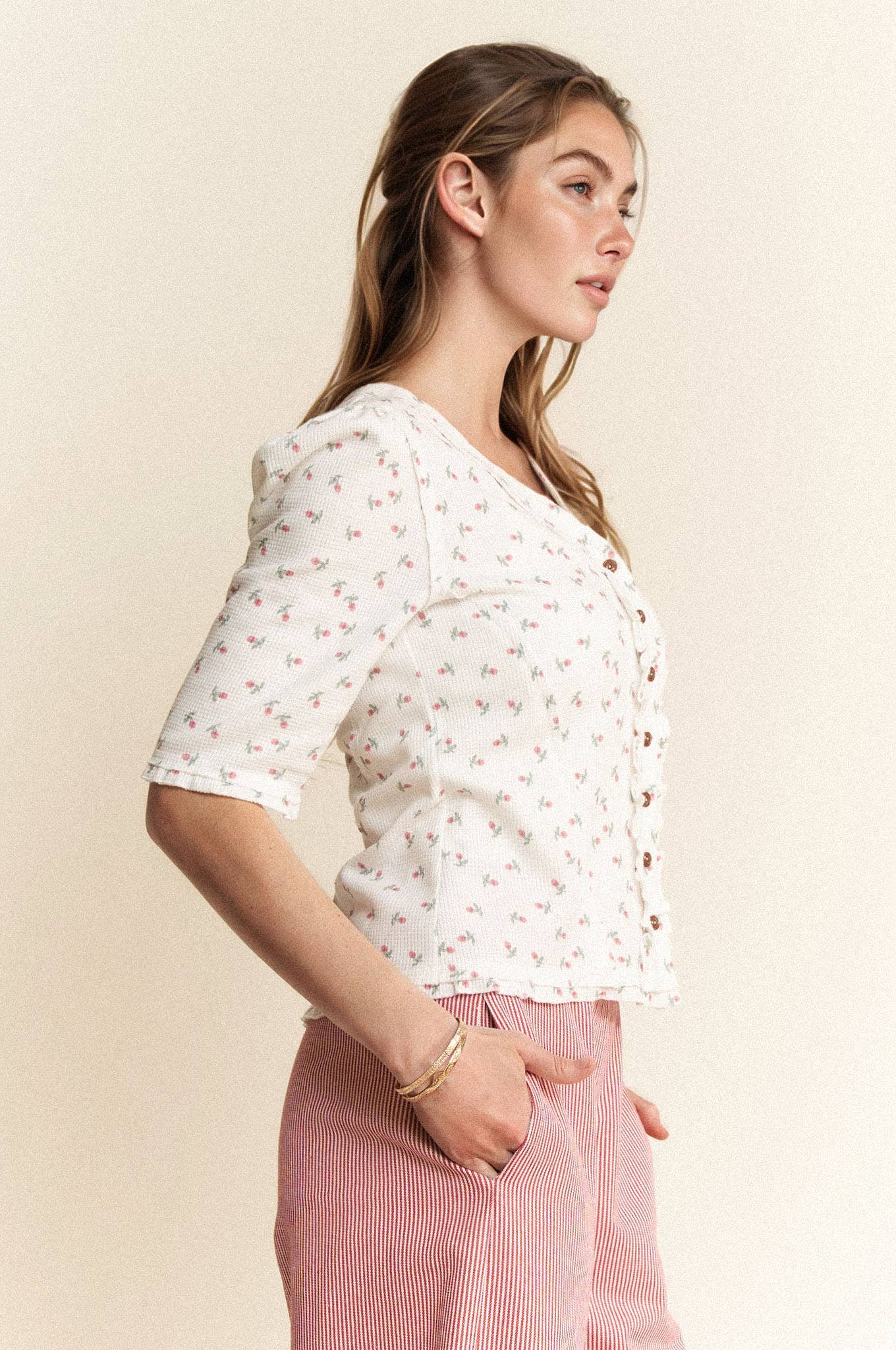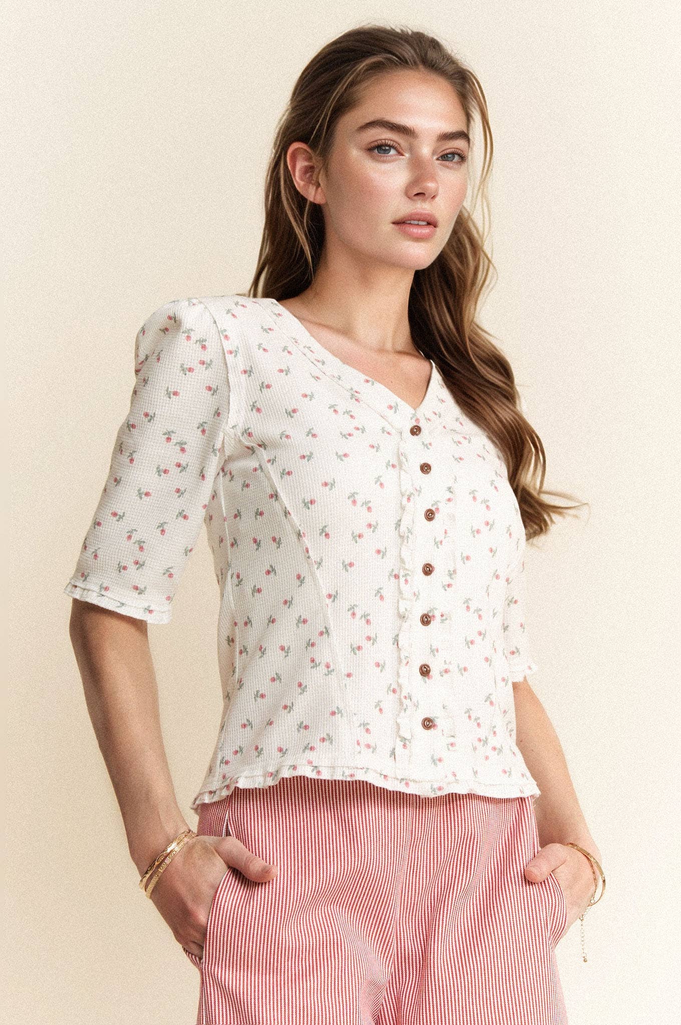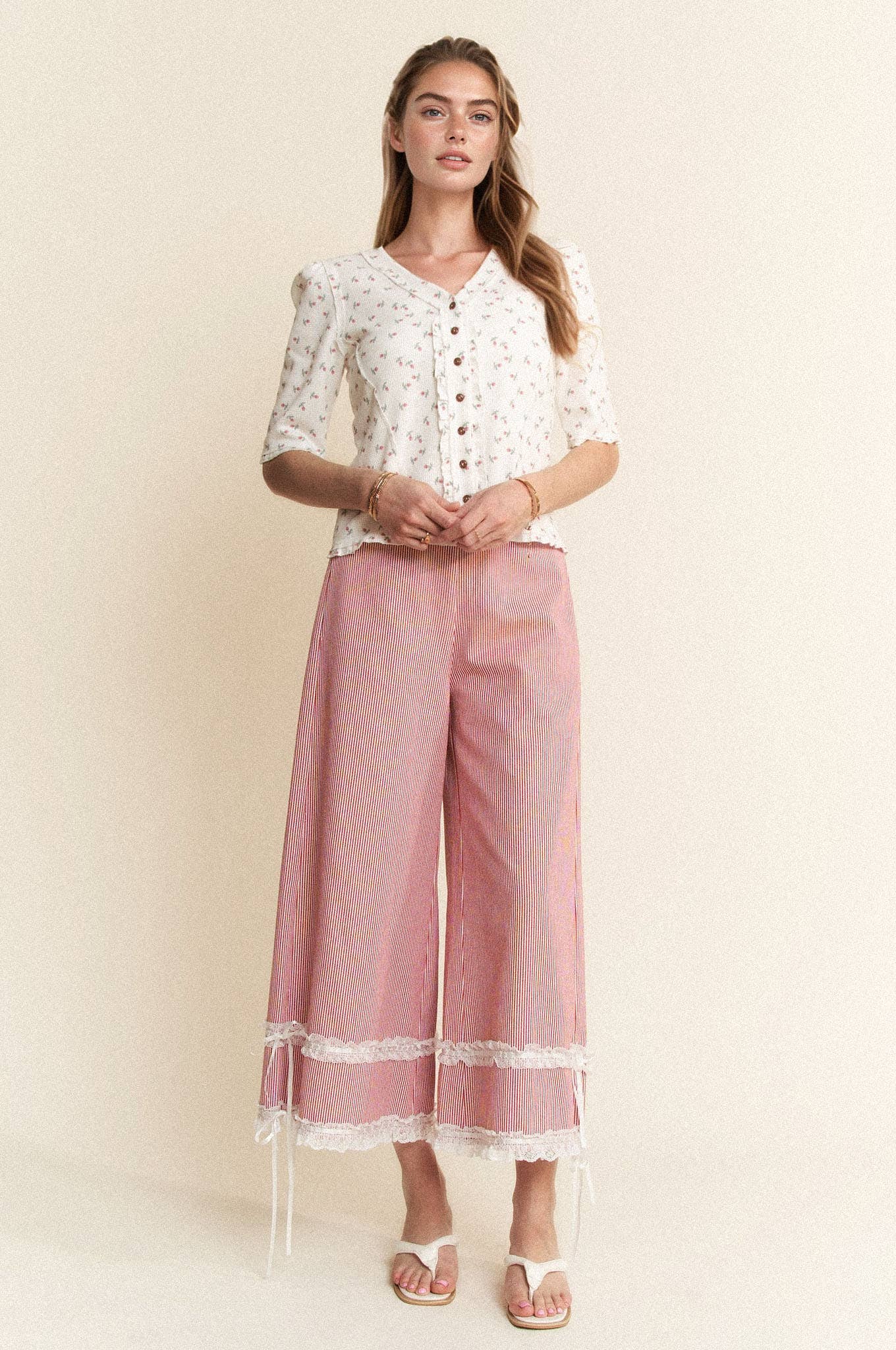 WASHED STRIPE RUFFLE LACE BOTTOM DETAIL WIDE OPENING CROPPED PANTS