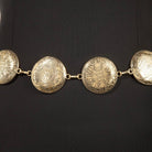 The perfect way to add some sparkle to your outfit, this chain belt features a distinct western concho engraved discs design. Add some personality to your outfit with this stylish chain belt. This chain belt is made with 100% Alloy.